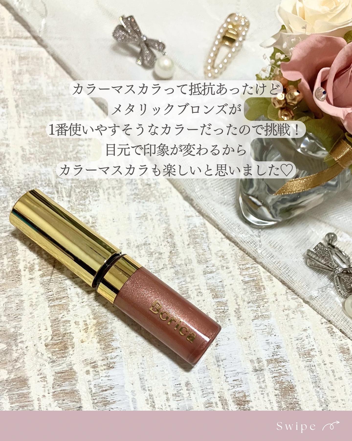 Borica美容液カラーマスカラ101メタリックブロンズ夏にぴったりのメタリックパール♡3色セットでお得に買えたので購入(ᴗ̫ᴗ)。.୨୧‿‿‿‿‿‿‿‿‿‿‿‿‿‿‿‿୨୧.。𓂃𓈒𓏸ブロンズカラー𓂃𓈒𓏸光の当たり方でメタリックパールのきらめ...