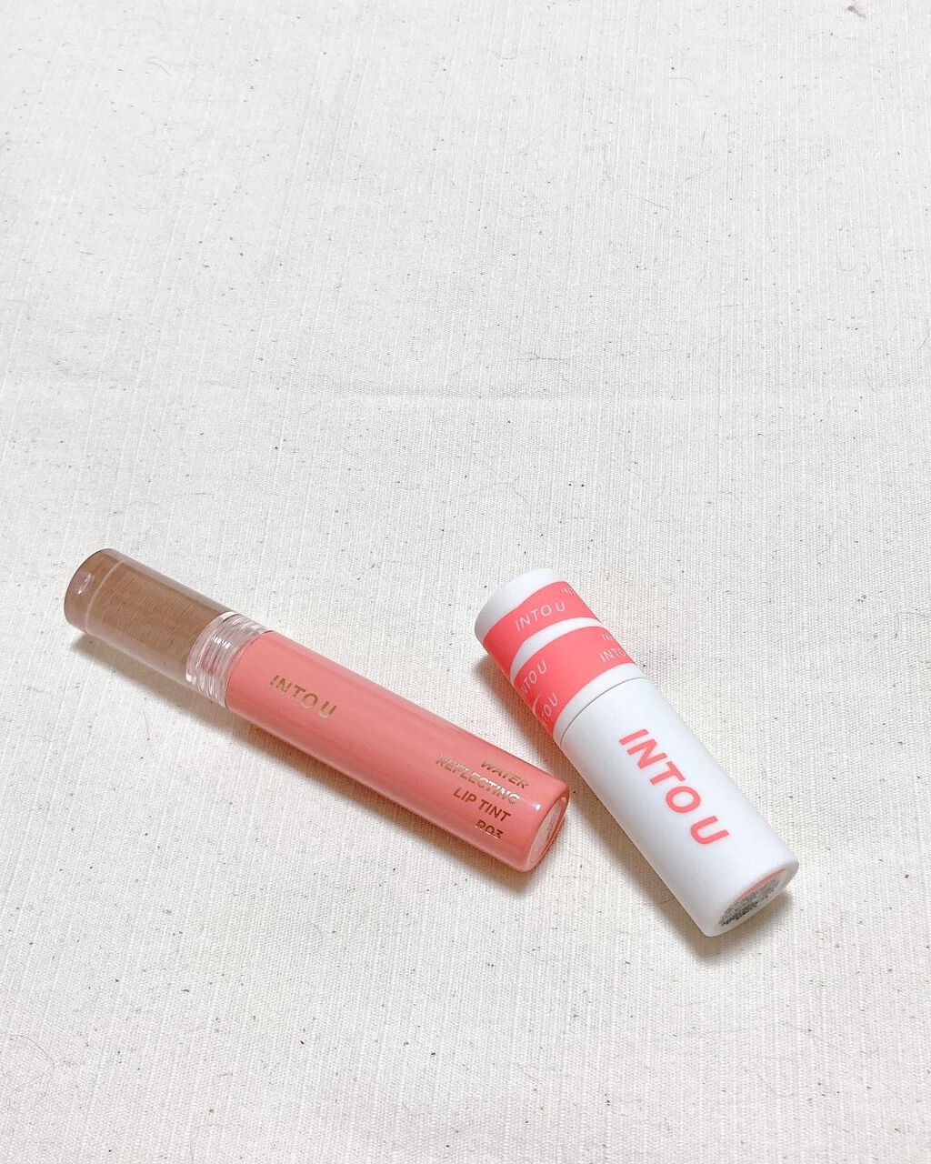とってもみずみずしい発色なのでお気に入りです!INTOUウォーターリフレクティングリップティント水膜のような光沢感で艶々プルプル💗少しベタつくのでマスクするときには使えないと思う😩...