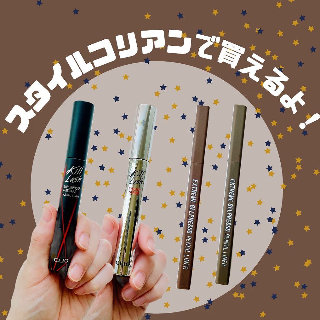 韓国コスメみてるときに気になって購入したCLIOのキルラッシュスーパープルーフマスカラ!汗を書いても滲んだりしないし、しっかりボリュームも出るのが嬉しいですね★購入してよかったマスカラです!...