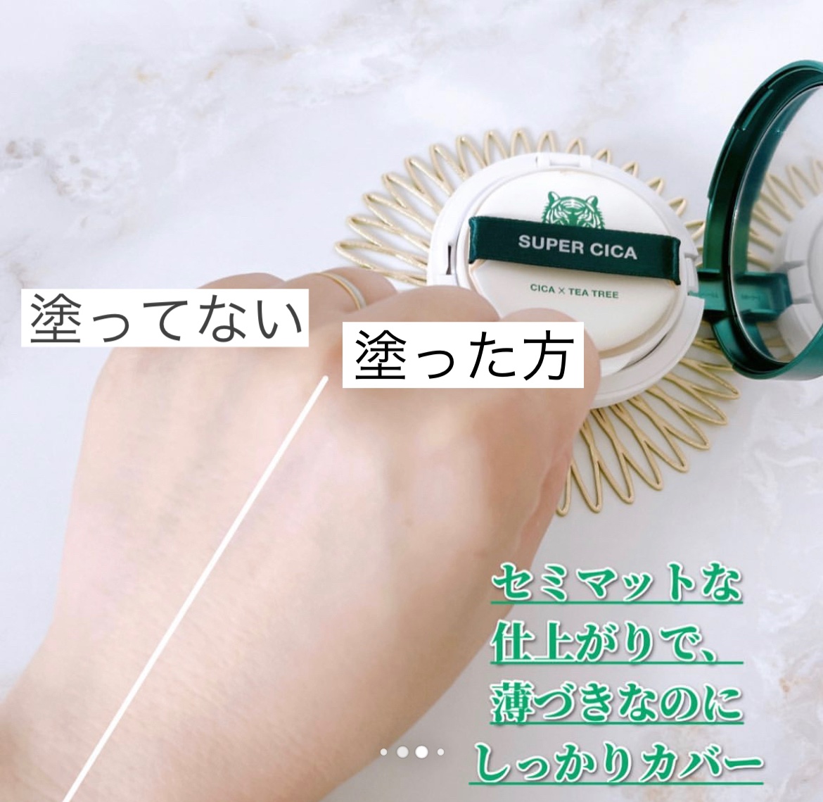 スーパーシカシリーズのクッションファンデで、肌に優しくて一日中ファンデをつけたままでも荒れなかった! しかもマスクをつけてても全然崩れないの! メイクしたてのお肌が帰宅するまで続いた!✨ カバー力も十分高くて、肌の赤みはかなり消してくれる✨
