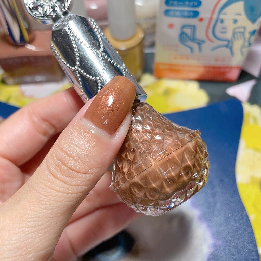 ほんのり上品なラメも入っていて、重くなり過ぎず絶妙なブラウン🥺 しかも禿げにくいから良い!😳ポリッシュって気付いたら禿げてるし塗り直すのめんどくさいんだよね💦 これも2週間くらいで先端は軽く剥がれてきちゃうけど、その辺のよりは全然モチ良い🙆♀️❤️