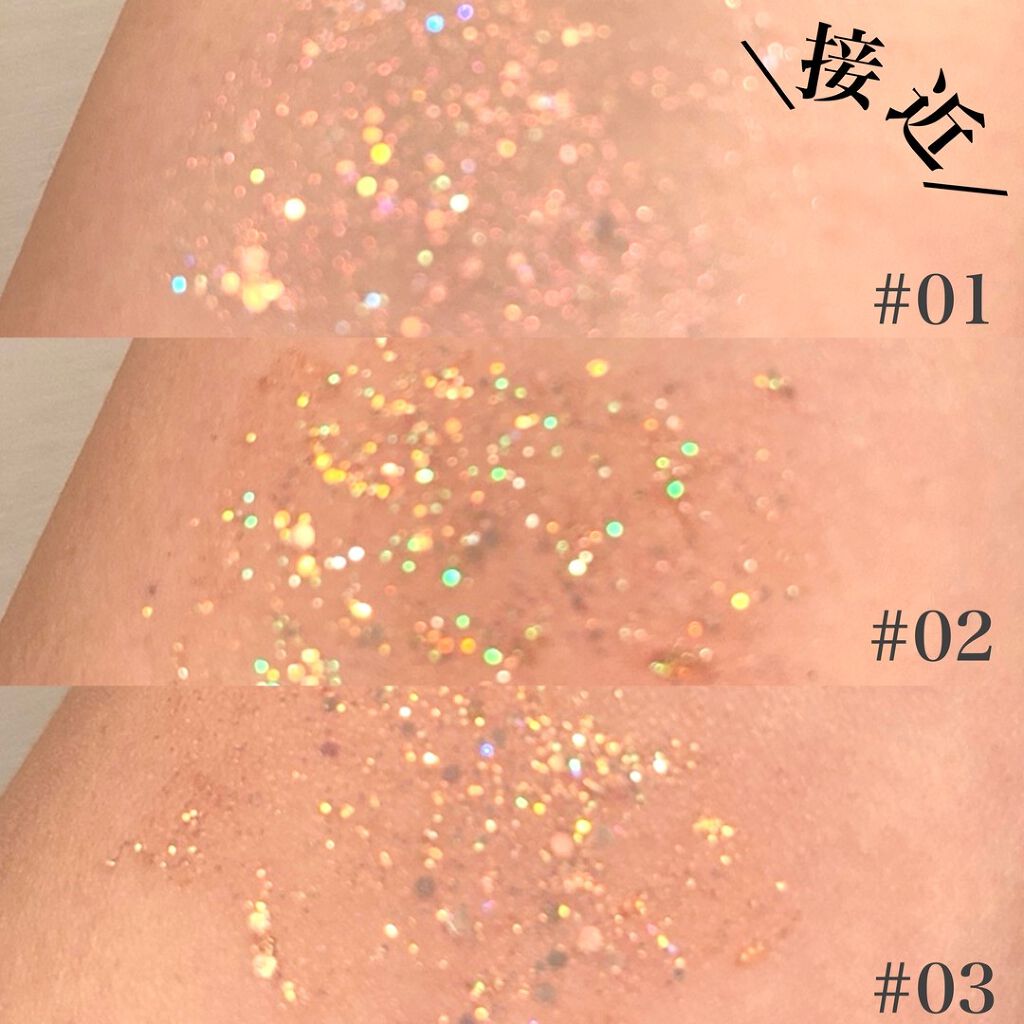 大粒ラメがしっかりフィットして飛び散らない◎! すっごく密着するのでお気に入り🥺💓 涙ぶくろにワンポイントでちょんちょんとラメを置くのが可愛くて最近ハマってます👍🏻❤️