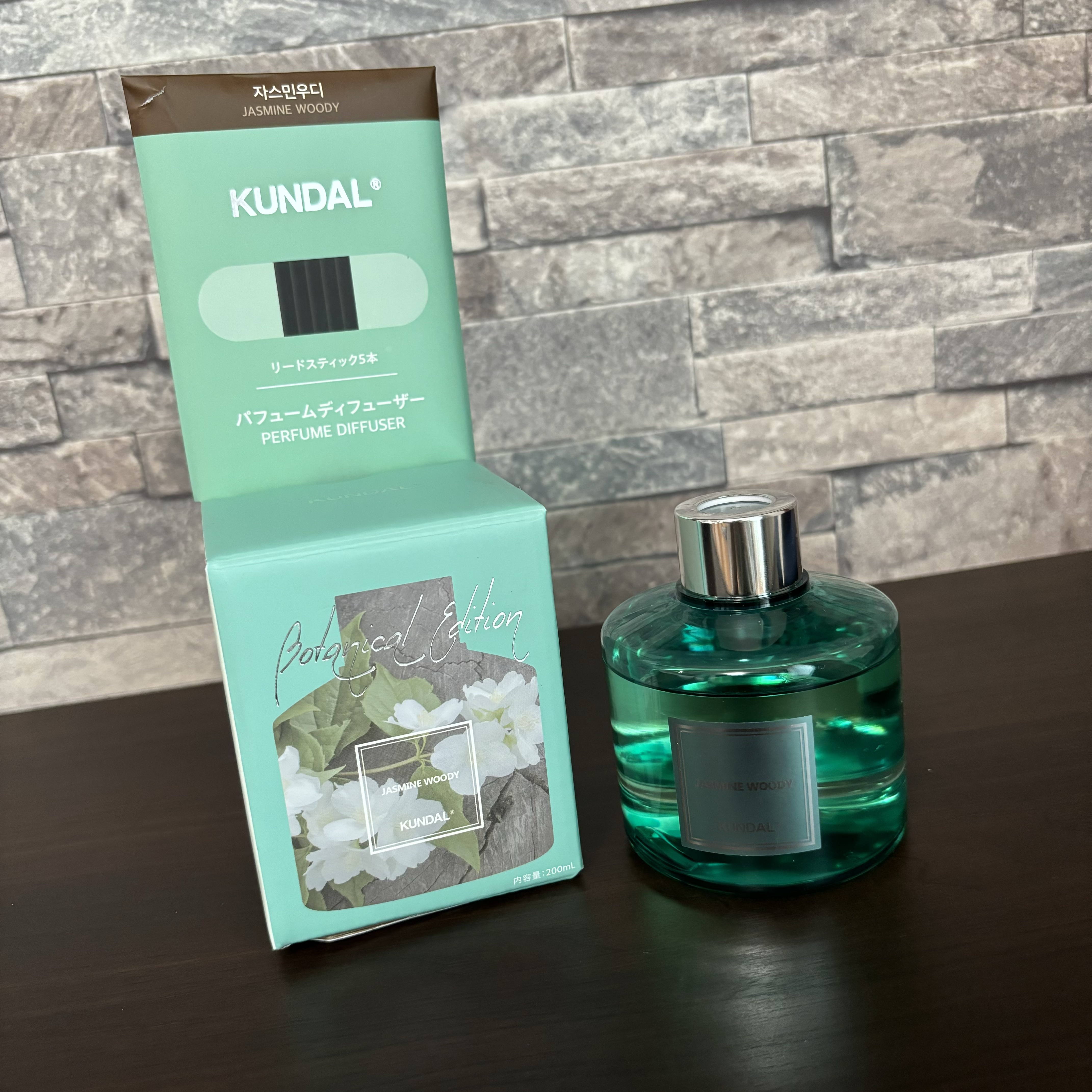 KUNDAL日本限定パッケージボタニカルエディションディフューザークンダル様のイベントでいただきました✨♡JASMINEWOODYジャスミンウッディまどろみに誘うようなやすらぐ香り♡BASIL&CITRUSバジル&シトラス太陽のようにパワーを...