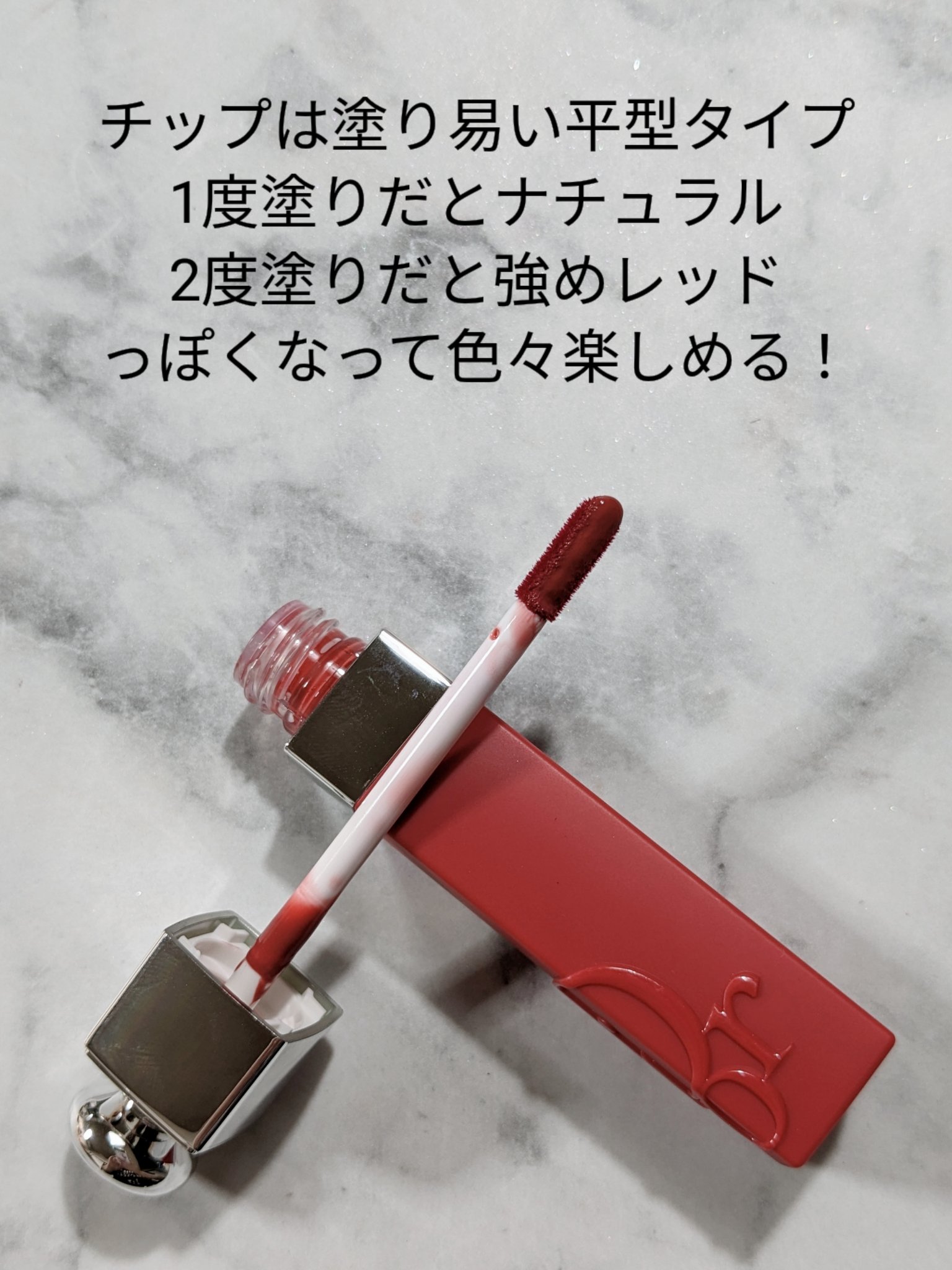 メイクの主役になってくれるリップティント👄〈Dior〉ディオールアディクトリップティント¥4,620651ナチュラルローズディオールアディクトリップティントは、うるおい美発色がずっと続く、高保湿ナチュラルケアティント。 12時間続くロングラスティングな高発色を叶えるフォーミュラが、唇と一体化するようになじみ、何も塗っていないような軽やかな感触をもたらします。処方の94%が自然由来成分で構成されたディオールアディクトリップティントは、チェリーオイルをたっぷりと配合。1日中唇をジューシーにうるおしながら、心地よさを長時間キープします。ディオールロゴがエンボスされたケースは、やわらかなベルベットを思わす肌触り。唇の形にフィットするよう設計されたアプリケーターが、ひと塗りで均一な仕上がりと理想的な心地よさを叶えます。 🌹651ナチュラルローズタイムレスローズウッド───────────────────── 可愛いパッケージで持っていてテンションが上がるディオールのティント💋651ナチュラルローズは、赤リップですが、少しオレンジみの入った赤で、赤過ぎて強くなることもなくでもリップメイクをはっきりさせたい時に主役になってくれるカラーです❣️リップを塗ってから1分くらいの時間でもコップに色がつきません😆✨発色もとてもよく、乾燥もしません。マットでもツヤでも無い感じです。#dior#ディオール#ティント#リップ#ナチュラルローズ #赤リップ#ディオールアディクトリップティント