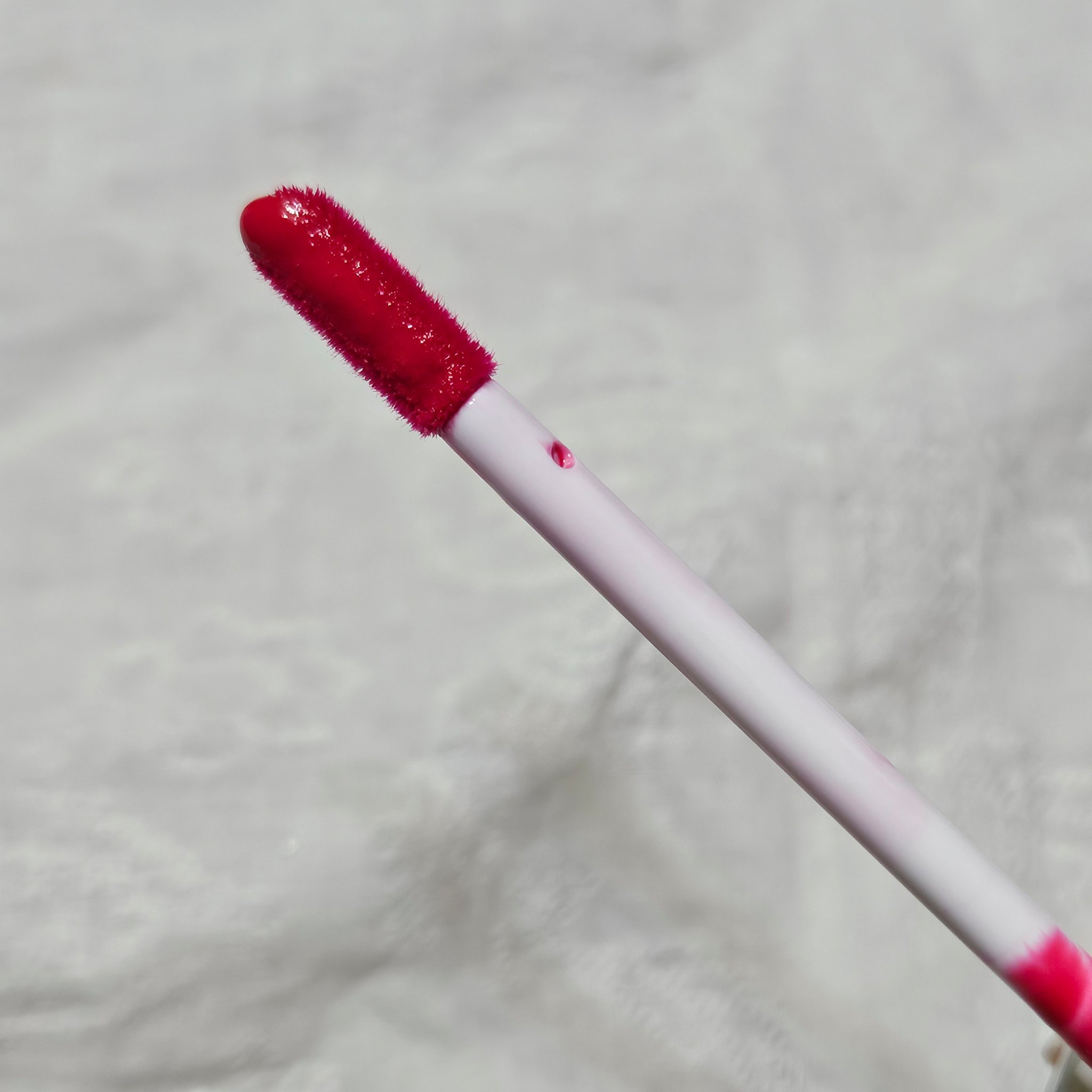ベッタリ付けなければ浮くことなく可愛く使用できました🙆 このチップで唇全体を伸ばすと濃いので指でぽんぽんすると、指に色が付くので注意です⚠️なかなか落ちません😂 綿棒やリップブラシを使用するのが良いです🙋 マスクに付きにくいです 飲食をすると多少は落ちていきます 唇のシワに入り込むのでリムーバーは必須です👍️