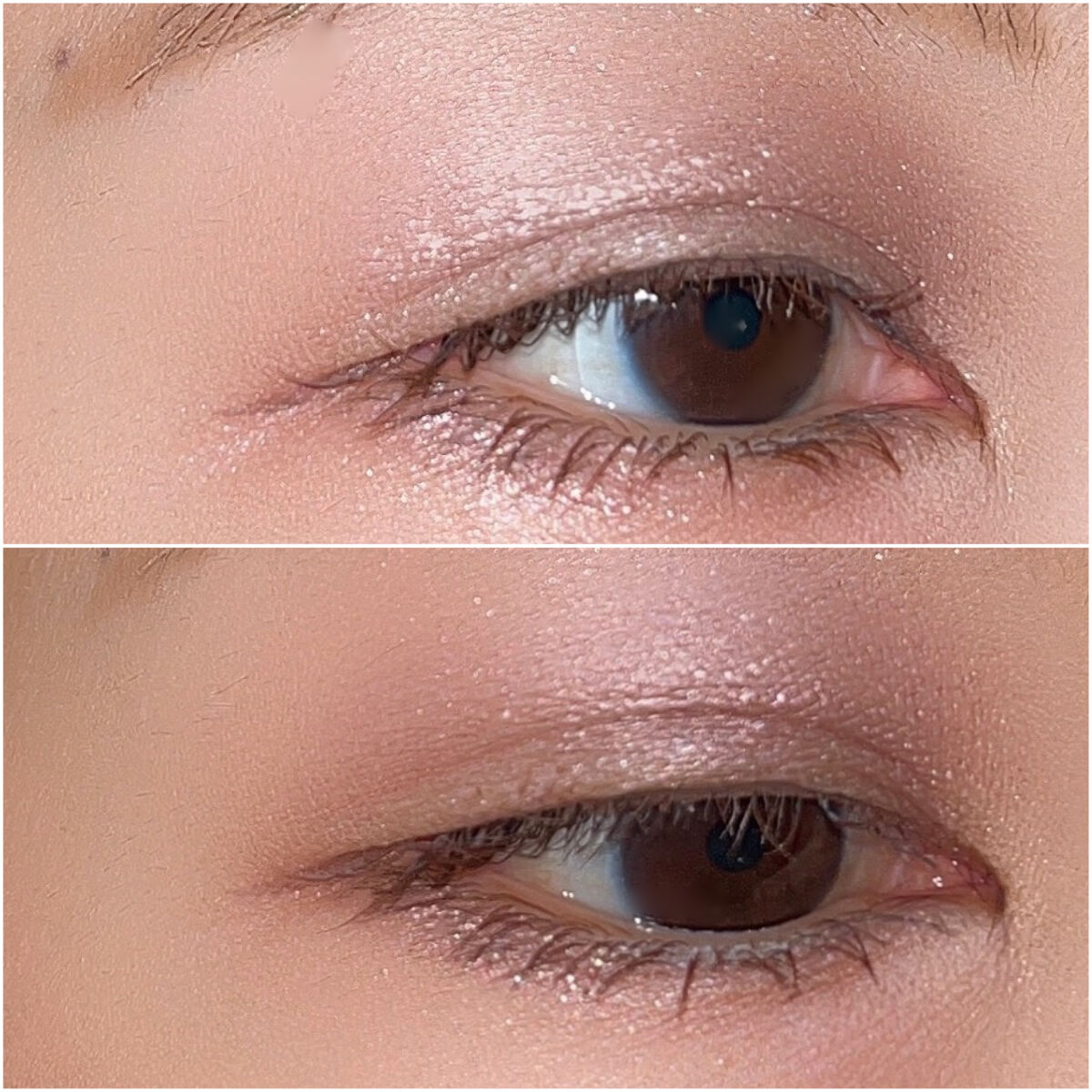 でも残念ながら私の肌では期待したようなモーヴには発色せず、赤みを強くひっぱってシルバーパールのブラウンの色に。 私は腫れたようなくすみに変わってしまうので残念でした。 ブルベ冬でも濁色が苦手なので、元々苦手カラーだったかもしれませんがテクチャはすごい好みでした。 ピタッと寄れなくなるのに目が痒くなりません。