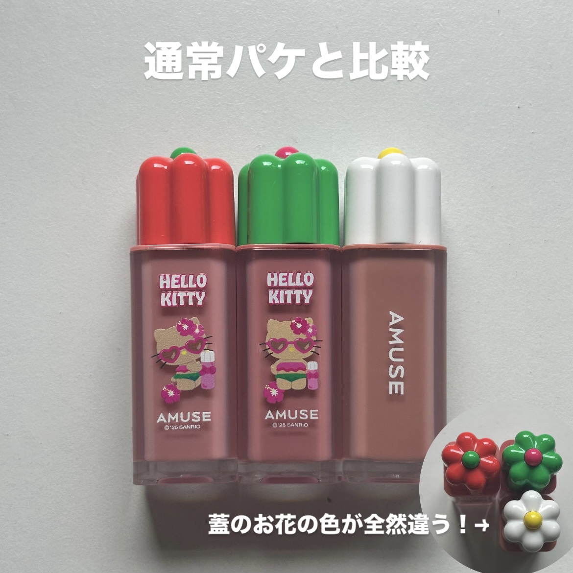 【AMUSE×日焼けハローキティ🌺☀️】____________#AMUSEデューティント水のように軽いテクスチャで色持ち抜群の最強ティント!塗ってから乾燥してくるのが意外と早いのと、発色がどれもピンク寄りなのが難点。_______11ドングリ(企画)13ジューシーモモ色めっちゃ似てた🥲よく見ると13の方がピンク寄りかな🤔____________¥3,000以上購入でジェルフィットティント東京ガール本品が貰えます!※メガ割期間限定。いつでも貰える訳では無いので注意⚠︎︎____________Qoo10メガ割におすすめです🧡#アミューズ#リップ#ティント#リップティント#韓国コスメ#Qoo10#メガ割#韓国リップ#プチプラコスメ#限定コスメ#パケ買い