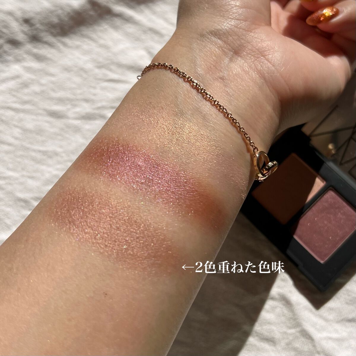 日焼け肌イエベにも馴染むパープル👧🏽☀️秋に使いたくなるいい色味…🥹💕#NARS#デュオアイシャドー3915透け感があり見た目よりもナチュラルな発色で大人っぽさのあるツヤ感がとっても綺麗🥺パープルなんて無縁だと思ってたけど、これは本当に馴染むし、自分に合ってると思えたアイシャドウ💄🪞重ねても濁らないパープルは、肌にのせるとほんのりブラウンっぽくも見えて綺麗✨✨ブラシでふんわりとのせましたが、濃淡の調節もしやすいし、グラデーションもつくりやすい!ムラなくふんわりまぶたにのってくれる。週2で真昼の海に行ってるからかなり日焼け肌になっちゃったけど、それでも使いやすいから重宝してる🥺唯一手放せないパープル💜アイライナーマジョリカマジョルカラインエキスパンダーBR612現在地マスカラメイベリンスカイハイ#お気に入り#パープルメイク#イエベ#秋メイク#秋コスメ#ナーズ#イエベメイク#My推しコスメ