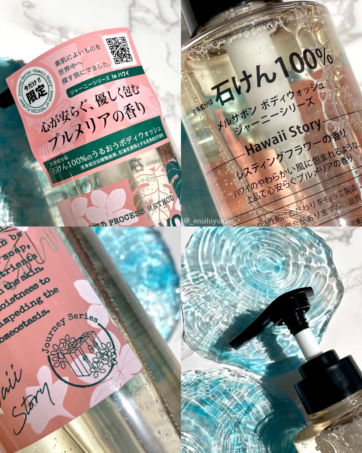 平素より大変お世話になっております。この度は、メルサボンボディウォッシュレスティングフラワーの、ご紹介になります🙏こちらはMELLSAVON様(@mellsavon_official)より頂戴致しました。ありがとうございます。心ごと洗い癒すレスティングフラワー___✎︎____________#mellsavon#ボディウォッシュお値段858円(税込)460ml✎︎____________詰め替え用660円(税込)380ml---------▷◁.。✧さっぱりタイプ✧「石けん100%」+「石油系0%」✧6種の天然由来エキス配合✧「美人の湯」と同じ弱アルカリ性✧南フランス伝統のコールドプロセスを採用✧世界で活躍している調香師が磨きをかけた香り---------▷◁.。ご存知うるおうスキンケアブランド"メルサボン"のボディウォッシュ。今回はジャーニーシリーズからレスティングフラワーを香りに癒されながらレビューしていく次第。.。.:✽・゚+.定番化されるほど大人気のレスティングフラワー。こちらのアロハブーケの香りは爽やかで甘く、優しいプルメリアの香り。ハワイな気分で癒しのバスタイム!弱アルカリ性のきめ細かな泡で汚れを綺麗に落としてくれます。石けん100%仕上げなのに石けん特有のキュキュッと感がなくしっとりとなめらかな洗い上がりです。.。.:✽・゚+.安心して使えて、香りも良くお値段もお手頃で色々とヤッホーな嬉しすぎるボディウォッシュ。爆裂におすすめです♥ᵕ̈*---------▷◁.。Twitter→@_enishiyukari_Instagram→@enishiyukari---------▷◁.。#メルサボン#ボディソープ#スキンケア#ボディケア#プルメリアの香り#skincare#bodycare#bodywash#平素より大変お世話になっております