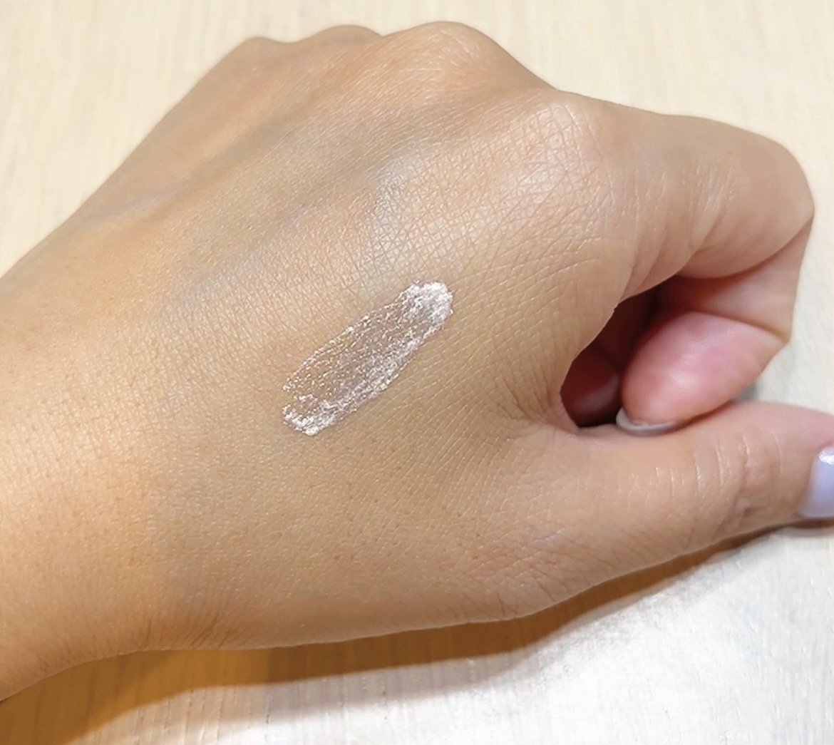 白っぽい色味でゴールドっぽいラメが入ってる リキッドなのでしっかりラメをつけたいとこにピンポイントでつけられる しっかりラメが密着して、チップが使いやすい○ ラメがゴールドなのもかわいい 涙袋にチラッと入れるのかわいい♡ なし!!!