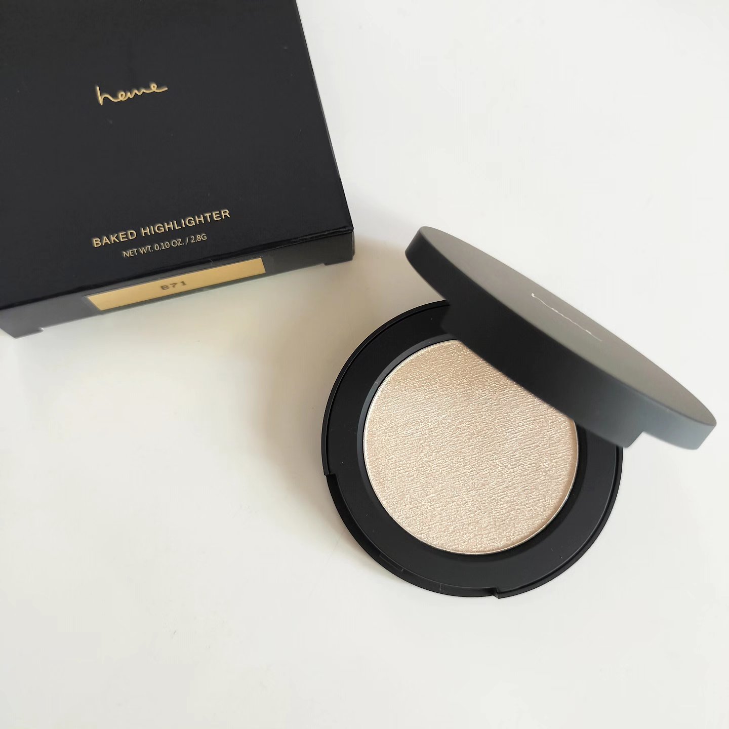 hemeベイクドハイライターカラー:ムーンライトホワイトおすすめの台湾コスメ☺️❣️色展開他にもあって悩んだけど、ホワイト系の色味にしてみました!ナチュラルに輝いてくれて使いやすいです!鼻筋はもちろん、光らせたいところに使うとめちゃくちゃ綺麗...