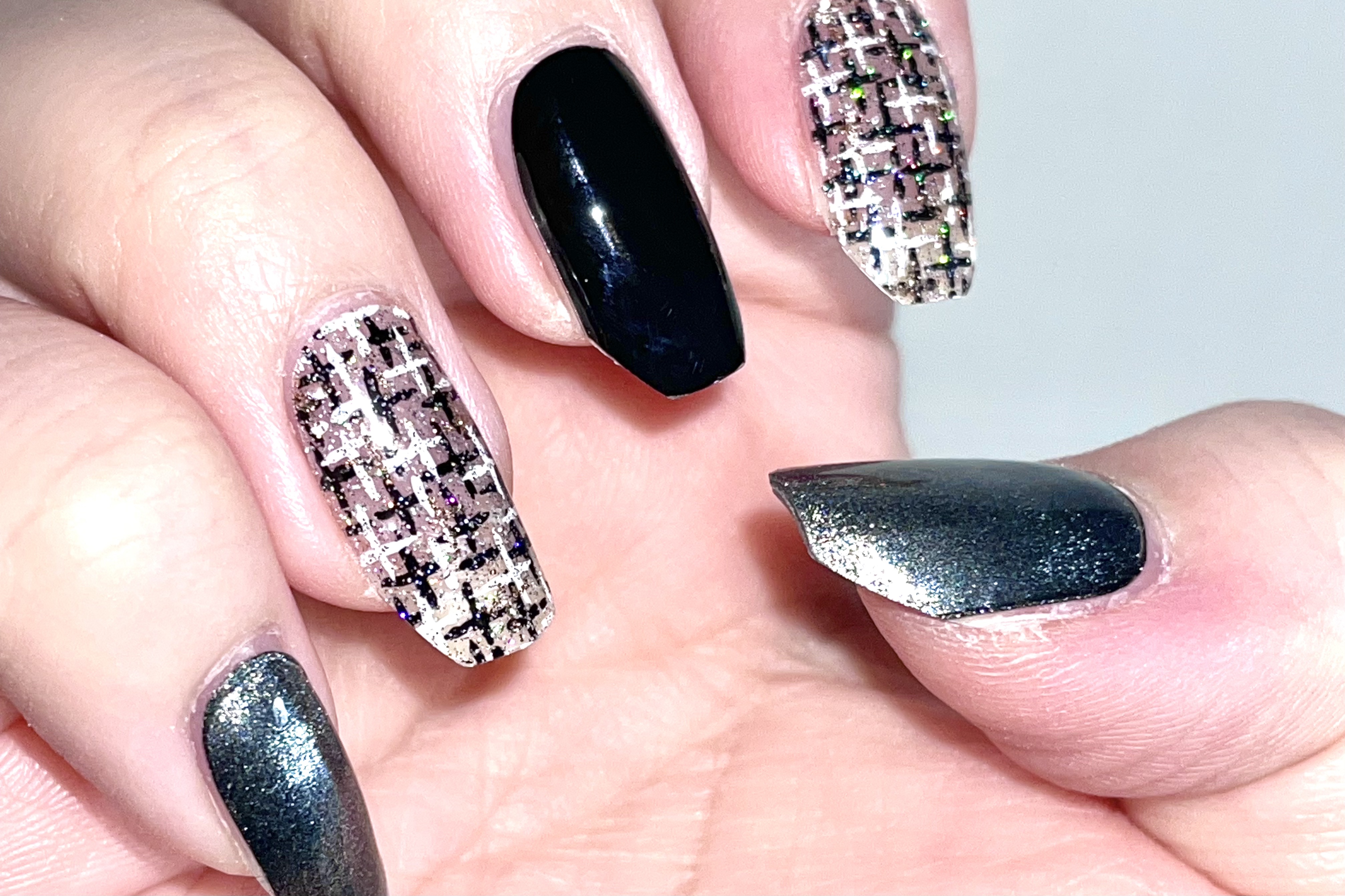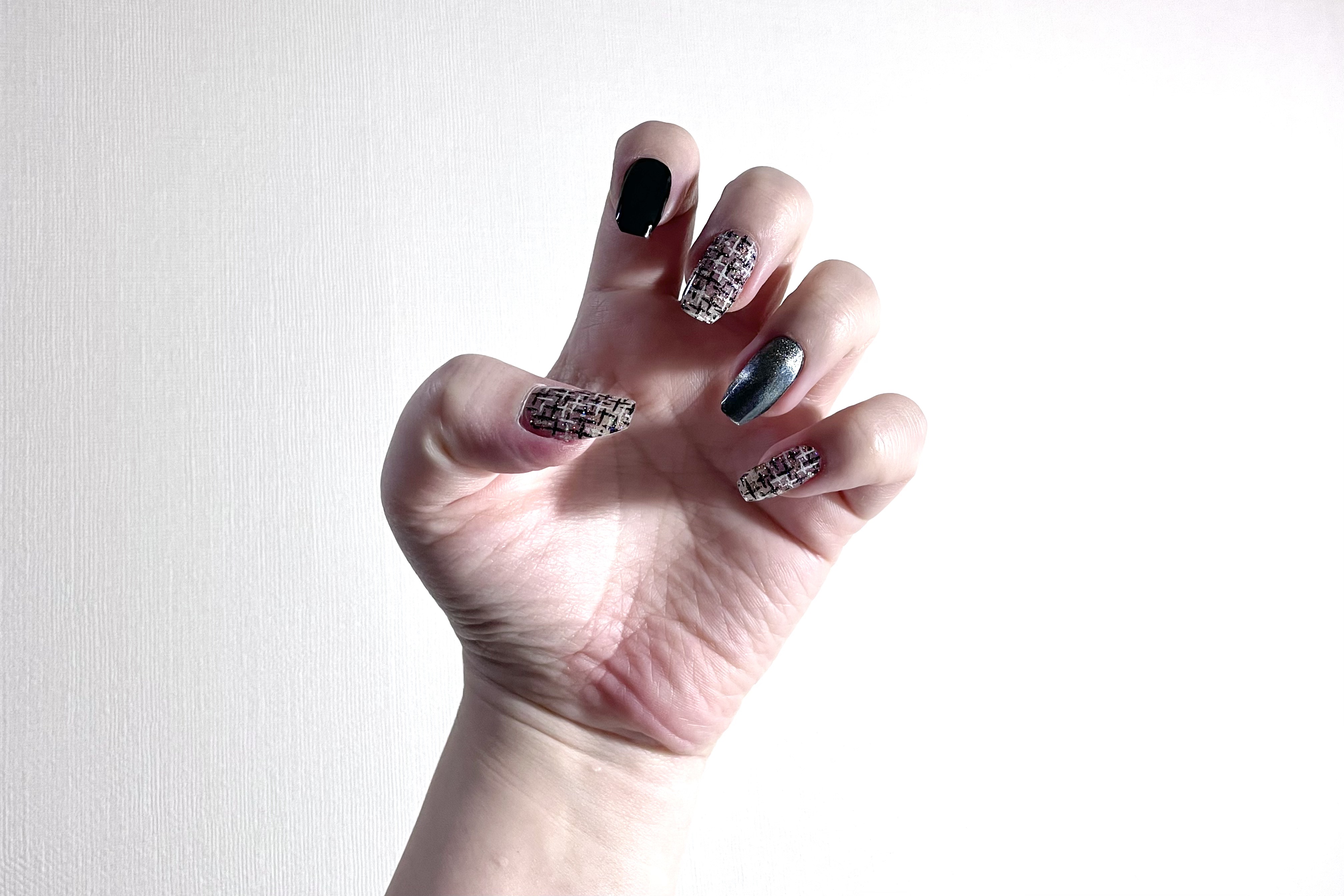 ohoraセミキュアジェルネイルハンドND-320NTweedJacket、購入しました〜ಠ_ಠモノトーンかと思いきやツイード柄の上に多色ラメが乗ってて可愛いですಠ_ಠ♡#ohora#セミキュアジェルネイル#ジェルネイル#ジェルネイルシール#ネイル#ブルーベース#ブルベ冬#色白#冬の新作コスメレビュー#甘いチョコレートメイク