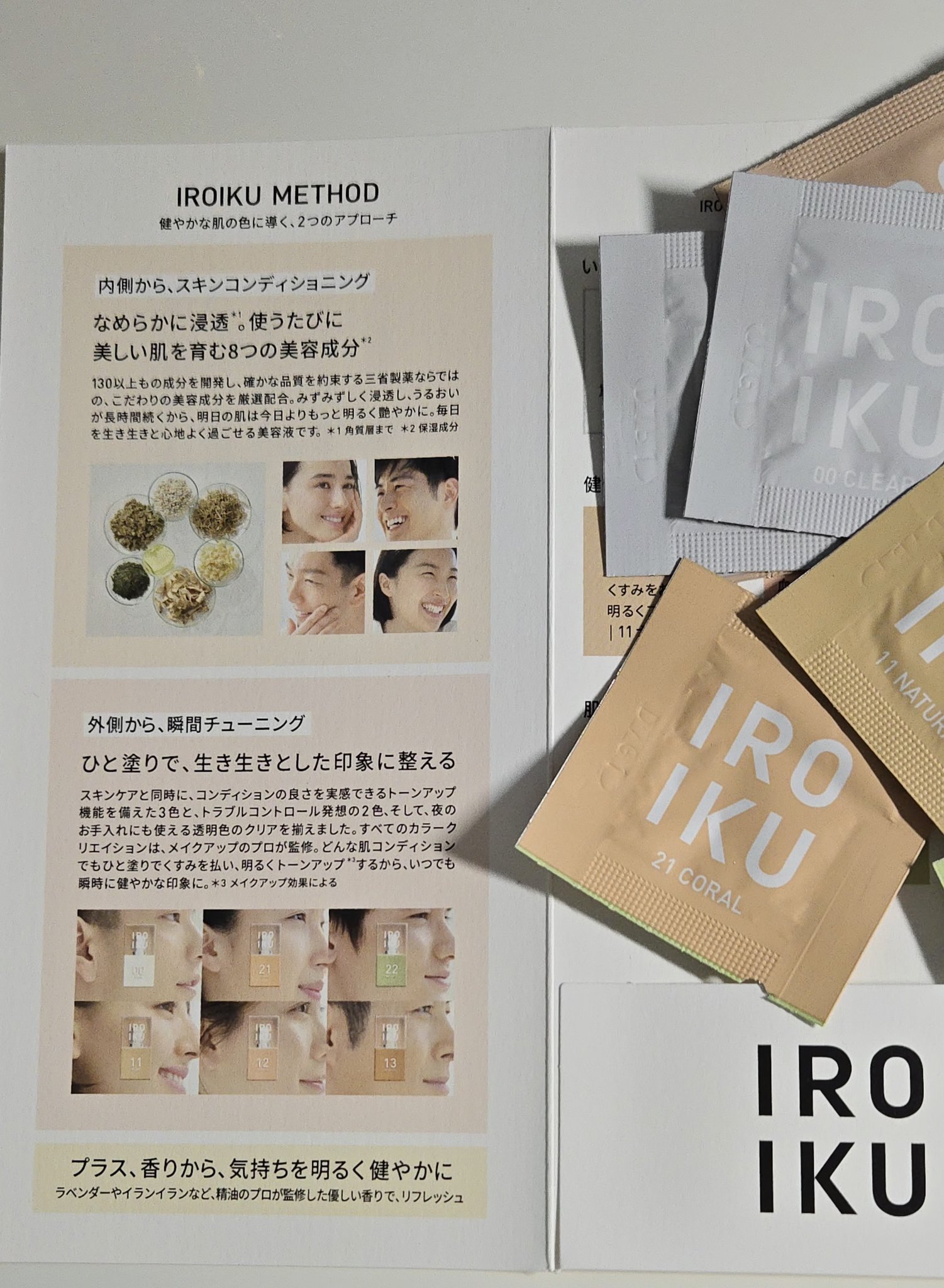 IROIKU▸▸スキンチューンナップセラム"健やかな肌の色で生きていく。"Instagramで広告が流れてきて気になったのでサンプルを注文してみました!新発想の美容液下地👏🏻👏🏻カラーは全6色あります◾︎00クリア色なしのものなのでいつでも誰でも使えるカラー朝夜のケアに!ケア重視さんにはこれ私はメイク前に塗ってます----健やかな肌の色にワントーン近づける3色----◾︎11ナチュラル"くすみをおさえて明るく"とても普段使い使いやすいカラーです迷ったらこのカラーだと失敗なさそうイエベさん向きカラーです◾︎12ペールピンク"血色感をプラスしたい方"年々顔色が悪くなるんですよね今日調子悪いなって時はこのカラーに頼ってますあんまりつけすぎると私は白くなちゃうので少量を薄く塗ってますこちらはブルベさん向けカラーです◾︎13ヘルシー"自然で引き締まった印象"これは思ったよりも暗めカラーでした夏に日焼けした時とか普段暗めカラーを選んでます!って方には良さそうです------肌のアラが目立たなくなる2色------◾︎21コーラル"シミやそばかすが気になる肌に"シミそばかすは完璧に隠せません。どちらかというと薄づきだと思いました。個人的には物足りず22ライムグリーン"赤みが気になる肌に"赤みが気になる日はこちらを仕込んでます!この他に数量限定カラーも発売されてるみたいなのでチェックしてみて下さいね!◾︎肌と環境に優しい処方🌎︎︎︎︎︎︎☑︎合成色素フリー︎︎︎︎︎︎☑︎旧表示指定成分フリー︎︎︎︎︎︎☑︎合成香料フリー︎︎︎︎︎︎☑︎コメドフリー︎︎︎︎︎︎☑︎パラベンフリー︎︎︎︎︎︎☑︎動物実験フリー︎︎︎︎︎︎☑︎紫外線吸収剤フリーテクスチャーが好みです。サラーってしているので塗り広げやすい!年齢、性別問わず使えるのがとても素敵だなと思いました使い切った結果最初は良いかも!って思ったのですが薄づきすぎて近所ならこれだけでいいですがしっかりカバーしたい日には向いてないかも💦個人的にはリピートはナシです