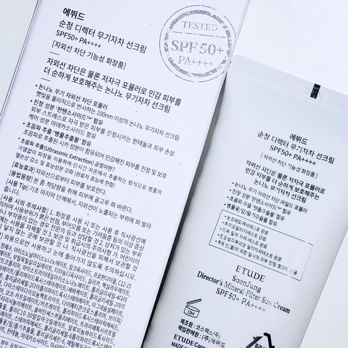 ETUDEスジョンディレクターズUVスンジョンディレクターズミネラルUVエチュードの日焼け止めクリームお肌にストレスなく使える日焼け止めクリームSPF50PA4+敏感肌さんでも荒れないと思いますがちょいとベタベタする感じもある重ためです白いクリームなので肌はトーンアップしますこれじゃなきゃダメという感じもないしお値段もそこそこするので正直リピはないかな