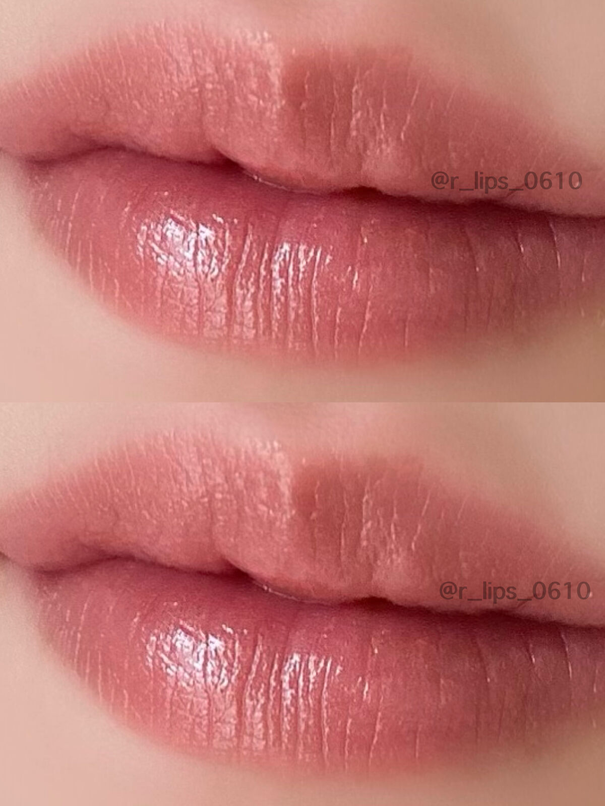 限定品ってすぐなくなるのに1年間も発売されてるのは珍しいですよね😳 ヌーディなピンクで自然な唇に🤍 割と薄付きで保湿力も高めなので色付きリップとしても使用できます😶💗 そしてツヤツヤ✨ 持ち運びをするとケースの傷が目立つので−1