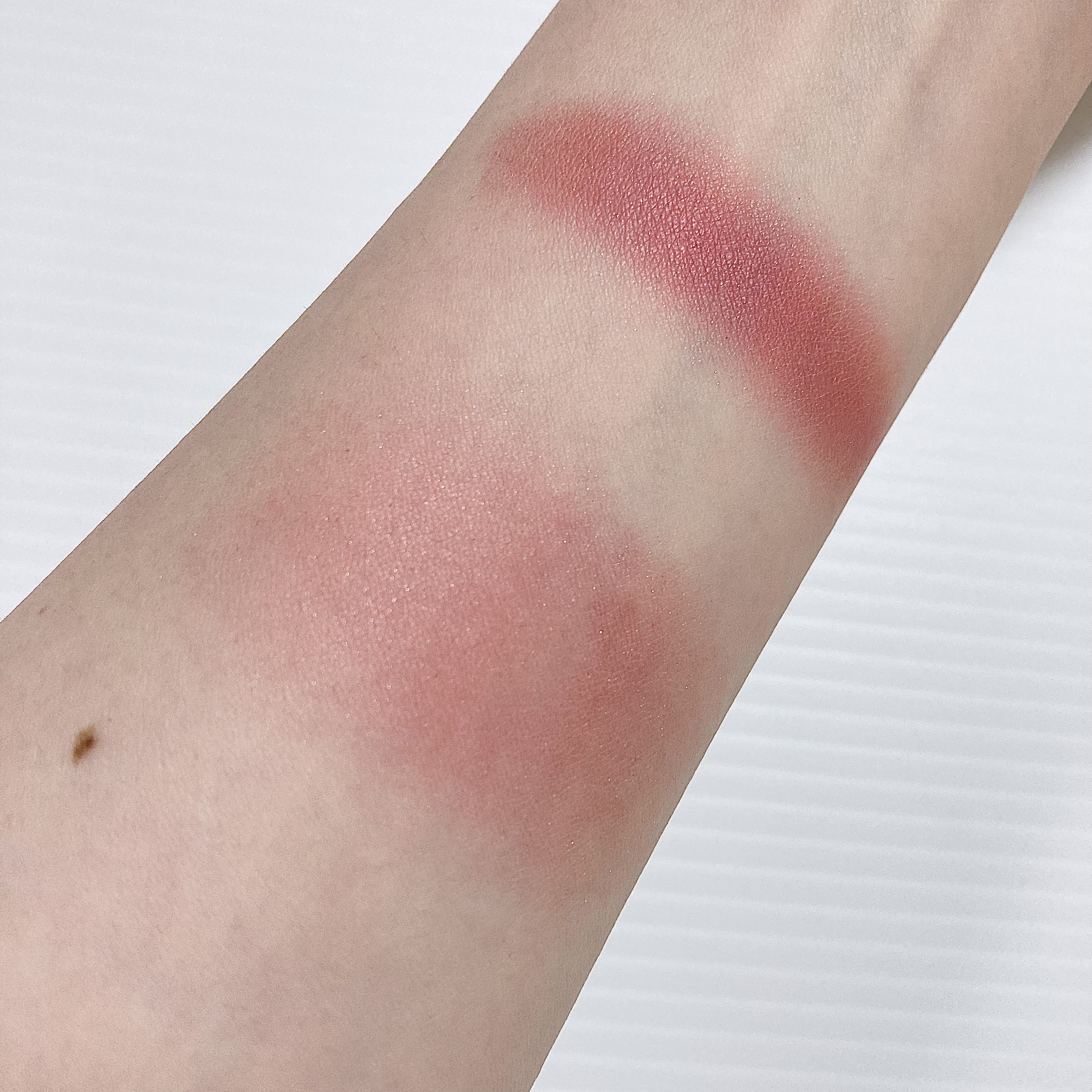 ひと塗りするだけで、パッと明るくなりつつ 内側から輝くニュアンスが素晴らしい👏 濃く色が出るように 最後の写真は比較として塗布したけど、 PCや季節関係なく汎用性高いチーク🤦🏻♀️💘 ほわっと頬に光と色が宿るので 使いやすいチーク💗
