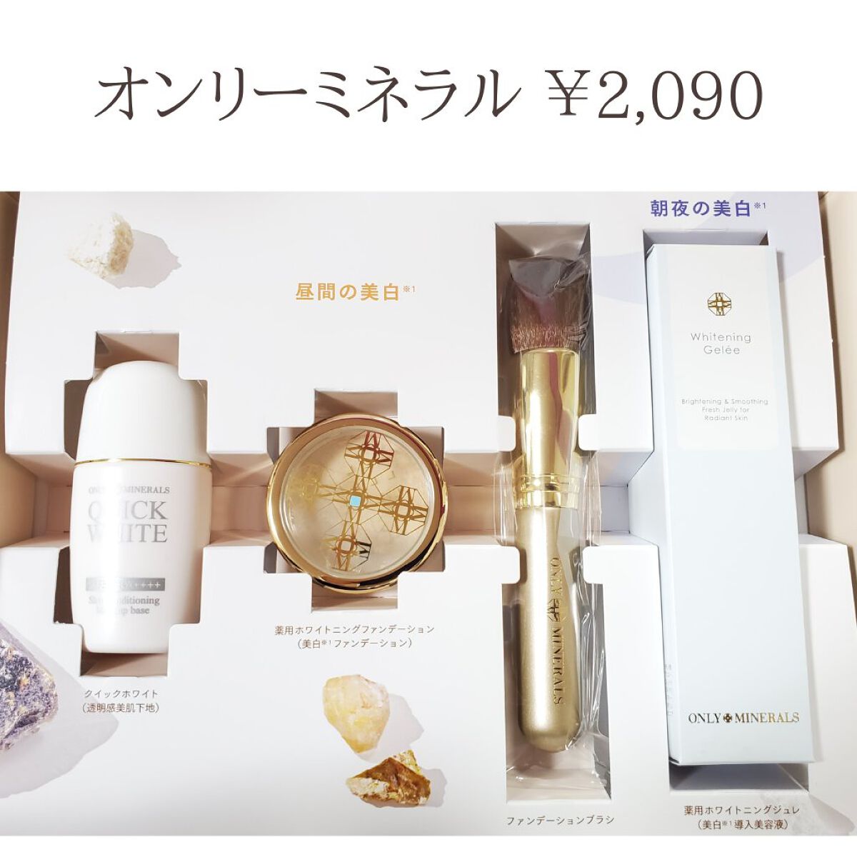 お得なトライアルセットのご紹介♪ミネラルファンデが気になっている方、ブラシだけ欲しい方などなど、ぜひ参考にしてみてね。❶レイチェルワイン┈┈┈┈┈┈┈┈┈┈┈┈┈┈┈┈┈┈ミネラルメイクアップトライアルセット¥1,980▪本格カブキブラシ▪ミネラルファンデーション0.5g×2色▪アクセントフェースパウダー0.3g本格カブキブラシは通常販売価格がなんと¥4,620!!肌触りが本当に心地よく、ずっと触っていたいような滑らかさ。カラー豊富で全12色中、2色セットの7パターンから選べます。粒子が細かいので肌の凹凸にもフィット。崩れにくくマスクにも付きにくいです。ひとつで5役の機能、日焼け止め(SPF27PA+++)、化粧下地、コンシーラー、ファンデーション、フィニッシングパウダー。❷エトヴォス┈┈┈┈┈┈┈┈┈┈┈┈┈┈┈┈┈┈┈┈┈スターターキット#40¥1,980▪マットスムースミネラルファンデーション0.8g▪ナイトミネラルファンデーション(フェイスパウダー)1g▪フェイスカブキブラシ▪モイスチャライジングローション20㎖▪モイスチャライジングセラム(美容液)10㎖▪モイストバリアクリーム5g▪クリアソープバー(洗顔)5g▪モイストシャンプー(サンプル)10㎖×1包▪リペアトリートメント(サンプル)8g×1包フェイスカブキブラシの通常販売価格は¥2,200。毛の量が少なめだけど、その分柔らかく広がりもいいです。スキンケアやお試しシャンプーなども付いています。※現在はスキンケアが新しいアルティシリーズに変更され、サンプルもミネラルインナートリートメントベース3包とホワイトニングクリアセラム3包のようです。カラーは4色から選べます。軽い付け心地で厚塗り感もなく、セミマットな仕上がり。時間が経った方が毛穴が目立たなく感じました。❸ONLYMINERALS┈┈┈┈┈┈┈┈┈┈┈┈┈┈┈┈┈┈24時間ミネラル美白トライアルセット¥2,090▪薬用ホワイトニングファンデーション2.5g▪ファンデーションブラシ▪薬用ホワイトニングジュレ(導入美容液)40㎖▪クイックホワイト(化粧下地)15㎖ファンデーションブラシの通常販売価格は¥3,850。毛の密度があり、外側が短く、真ん中に向かって長くなっていて弾力を感じます。※現在はデビューブラシという柄の短い物に変更され、ファンデーションは1g、クイックホワイト(化粧下地)も付いていないようです。カラーは2色から選べます。ツヤ感とカバー力が程よく、自然な仕上がりです。6つの多機能パウダーで、日焼け止め(SPF50PA+++)、化粧下地、美白美容液、コンシーラー、ファンデーション、フィニッシングパウダーがこれひとつに。┈┈┈┈┈┈┈┈┈┈┈┈┈┈┈┈┈┈┈┈┈┈┈┈┈┄3種ともすべてミネラルファンデーションなので、肌に負担が少なく、石鹸で落とすことができます。濃いシミを隠すほどのカバー力は無いけど、肌の綺麗な人やナチュラルメイクが好きなら満足できると思います。#買って後悔させません