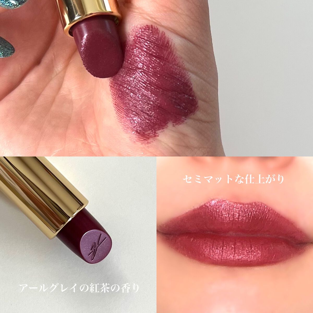 カラーは18 メタリックバーガンディーボルドー系のカラーでとにかくこの色味がなみの心を射抜きました💘 塗るとほんのりとアールグレイの紅茶の香りがする クリーミーなテクスチャーで艶感出しつつセミマットな仕上がり繊細なラメが入っており落ち着いていて上品な印象の唇に✨ パッケージもゴールドで統一されデートの日や大事な日のバッグに入れたくなる🥺 背伸びさせてくれるリップぜひ皆さんもお試しあれ💋💄