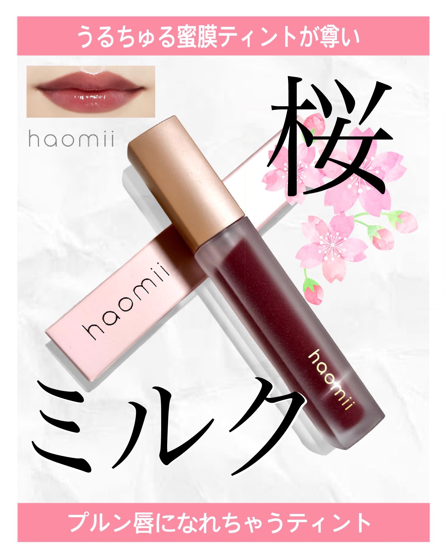 haomiiのリップティントがめちゃくちゃ優秀で感動🥹 それぞれに花や果実の名前がついたうるおいたっぷりのリキッドルージュ♡ 唇プルプルになるのにしっかりつけたての色が続くティント処方といういいとこ取りの神リップ💄 私はさくらミルクにしたけど本当に可愛くてオススメです🌸🎀