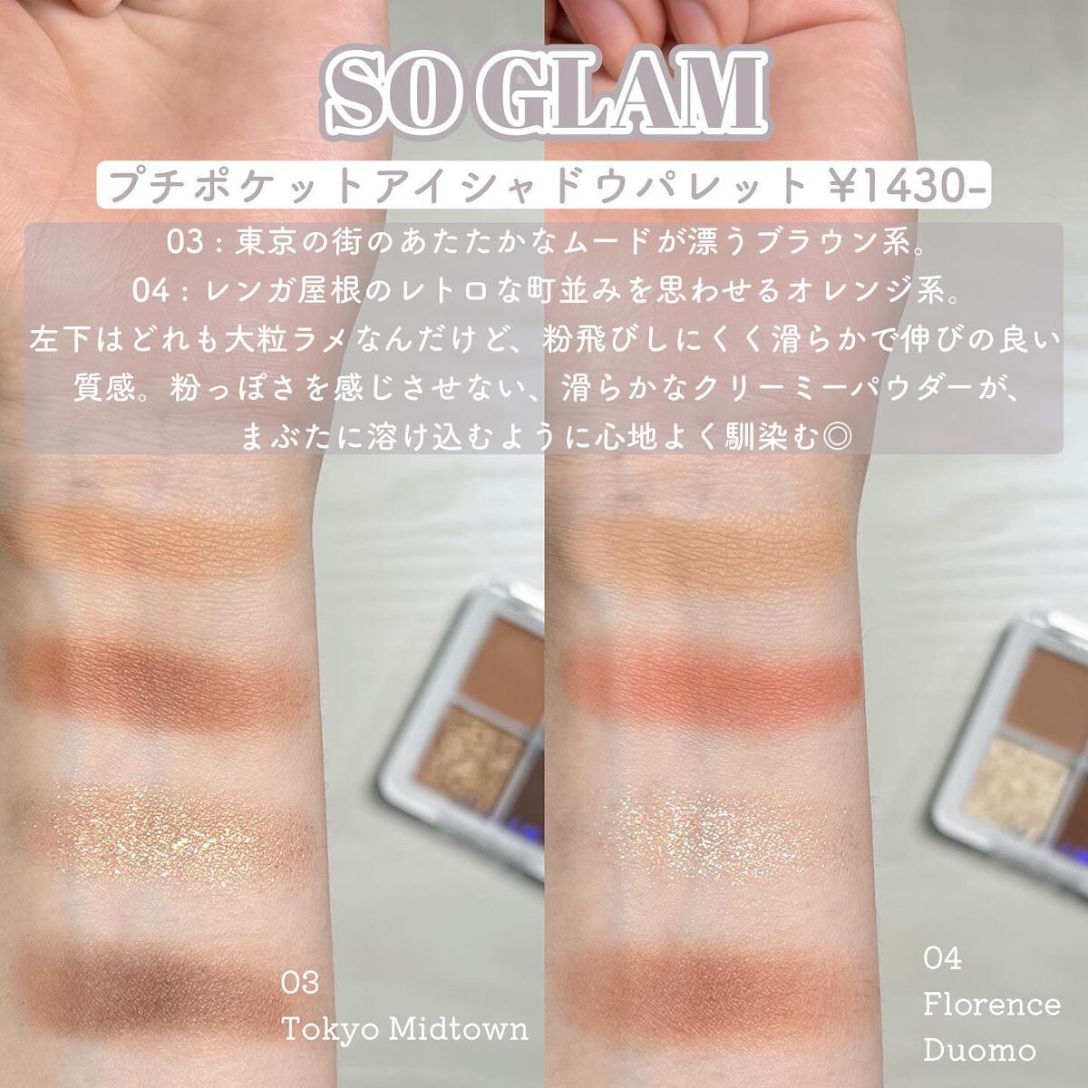 -日本初上陸ブランド"SOGLAM"徹底レビュー-┈┈┈┈┈┈┈┈┈┈┈┈【プチポケットアイシャドウパレット】・01BigBen・02GoldenGateBridge・03TokyoMidtown・04FlorenceDuomo全4色展開各¥1430-【ブラーホイップドリップティント】・01LatteNude・02Butter&Cream・03Toast・04PinkKashmiri・05EarlGreyDip・06OhKejchup!全6色展開各¥1320-【タッチアップリキッドファンデーション】・01LightIvory全3色展開各¥1100-┈┈┈┈┈┈┈┈┈┈┈┈今回は日本上陸したての#タイコスメブランド、「SOGLAM」を全アイテムレビューしていきたいと思います🙌🏻アジアで2018年に発売以来、リップが累計700万個以上もの売上を記録した今話題のブランドなんです✨タイコスメならではの「落ちにくさ・崩れにくさ」を兼ね揃えた優秀アイテムとなっておりますので是非最後まで見ていってください👀こちらは@jflabo_cosme様より商品提供して頂きました!素敵な商品をたくさんありがとうございます🙇🏻♀️🤍フォロワー様5000人目指して頑張っております!少しでも参考になりましたらいいねとフォロー、よろしくお願い致します🙏🏻コメントもお待ちしております💬┈┈┈┈┈┈┈┈┈┈┈┈商品特徴・色味について・ラメ感・スウォッチ・カバー力…などの詳しい情報は画像をご覧ください。┈┈┈┈┈┈┈┈┈┈┈┈"SOGLAM"っていうブランド名は「SoGlamorous」っていう言葉が由来なんだとか。新しい自分の魅力を表現し、美しさに自信を持てるよう、高品質な製品を提供しています💡高品質なのに手に入れやすい価格帯で気軽に試せるのが良いよね〜、年中金欠女からするとめっちゃ助かる◎┈┈┈┈┈┈┈┈┈┈┈┈アイシャドウパレット・リップ・ファンデーション、どれもすごい良かった👏🏻アイシャドウパレットは配色、高発色なところ、そして左下のラメ感がめっちゃ綺麗なところが気に入りました!リップはとにかく高発色なところ、乾燥しにくいところ、そして色持ちが良いところが推しポイント🙆🏻♀️ファンデーションはコンパクトサイズなところ、カバー力が高いのに厚塗り感が出にくいところ、コスパが高いところが良いと思いました🤍┈┈┈┈┈┈┈┈┈┈┈┈使ってみて話題になった理由がよくわかるなって思いました!ECサイトでの予約販売は8/5から始まっていたみたいなのですが、9/3よりロフト一部店舗にて先行販売が開始します🫣またラフォーレ原宿5F店舗「JFラボコスメ」、全国店舗にて順次発売されるので気になった方はチェックしてみてください!┈┈┈┈┈┈┈┈┈┈┈┈フォロワー様5000人目指して頑張っております!少しでも参考になりましたらいいねとフォロー、よろしくお願い致します🙇🏻♀️コメントもお待ちしております💬┈┈┈┈┈┈┈┈┈┈┈┈#SOGLAM#ソーグラム#透け感マット肌#ふわとろホイップ質感リップ#忍ばせ宝石シャドウ#アイシャドウパレット#アイシャドウ#マットリップ#ファンデーション#ベースメイク#美容垢#美容垢さんと繋がりたい#美容垢さんフォロバします#コスメ好きさんと繋がりたい#コスメ好きな人と繋がりたい#コスメ好きと繋がりたい#メイク好きさんと繋がりたい#メイク好きな人と繋がりたい#メイク好きと繋がりたい#コスメ垢さんと繋がりたい#コスメ垢さんフォロバします#メイク垢さんと繋がりたい#メイク垢さんフォロバ#コスメオタク#コスメレポ#コスメ記録#メイク記録#コスメレビュー#本音でガチレビュー