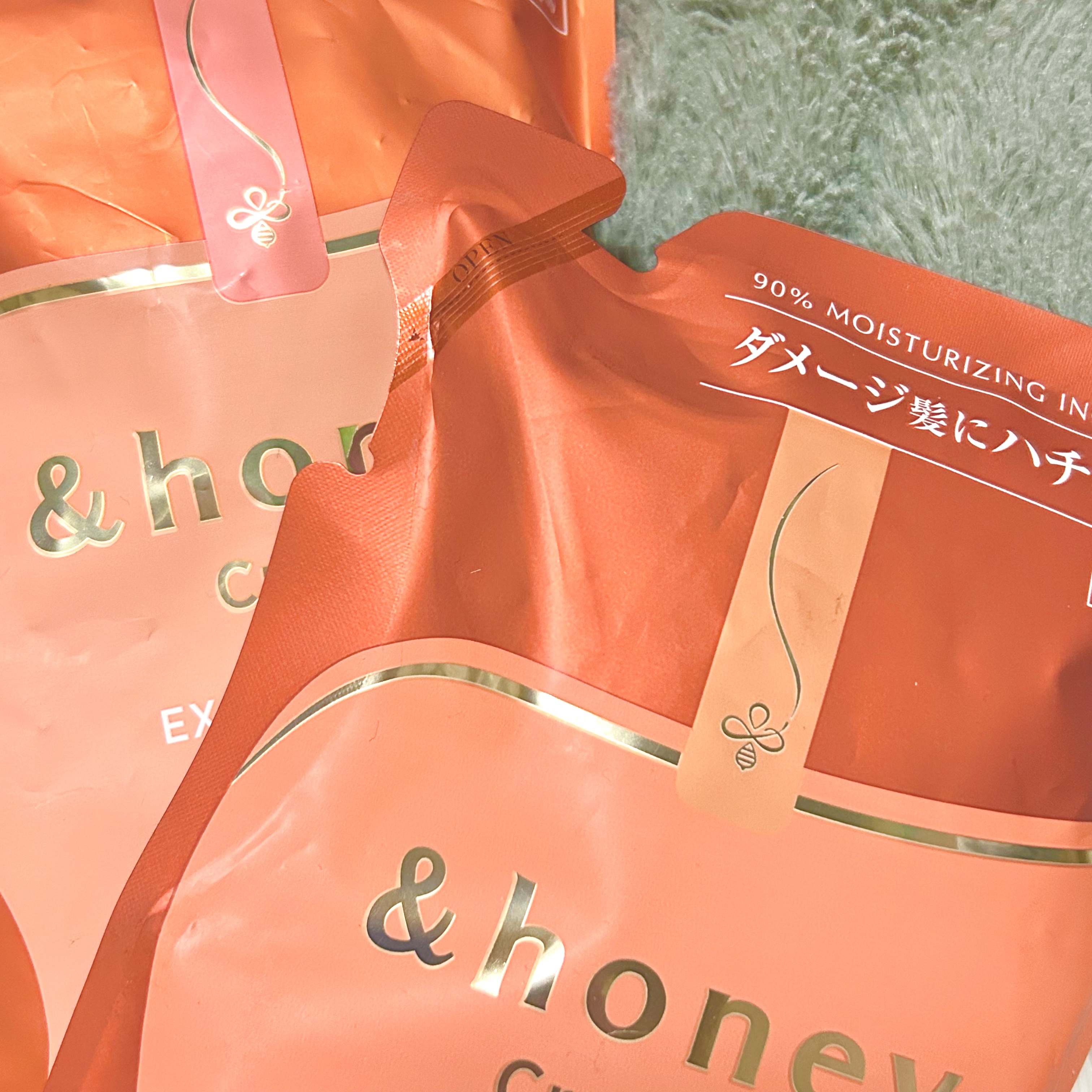&honeyCreamyEXダメージリペアシャンプー1.0ヘアトリートメント2.0【詰替用】アエナで2つ合わせて、約800円ほどで購入しました!●シャンプーモッタリとした重めのテクスチャです。甘い香りがするので、最初は少しキツかったです。持続性もあり。泡立ちが良く、重めのシャンプーなので、まとまりはありました!ただ、重めなので、ベタついたり、ペットリしやすいように感じました。(肌質や皮脂量もあり、前髪はベタついやすいかな?と思いました)●トリートメントこちらもシャンプーと同じように甘い香りがします。テクスチャも重めです。しっとり、まとまりのある髪になれます!ハニーチェよりもまとまるように感じました。トリートメントは結構好きかも!ただテクスチャが重い分、夏場などの汗皮脂が多く出る時はテカリやベタつきが気になりそうな気もしています。⋆┈┈┈┈┈┈┈┈┈┈┈┈┈┈┈⋆両方とも、秋冬の乾燥の時期にいいのかも!と使用して初めて、季節に合わせて使い分けしてみようかな?と感じました!&honeyは個人的には少し高く感じており、なかなか手を出すことが出来なかったのですが、両方で1,000円以内で購入でき、お試しできたのは嬉しかったです!アエナ様様🙇♀️(商品入れ替えの品や新商品では無いので、今とは多少成分の違いもあるかもしれませんが💦)#&honey#CreamyEXダメージリペアシャンプー#CreamyEXダメージリペアヘアトリートメント#シャンプー#ヘアトリートメント#詰替用#ダメージケア#はちみつ#髪の毛サラサラ#しっとり#ヘアケア#アエナ