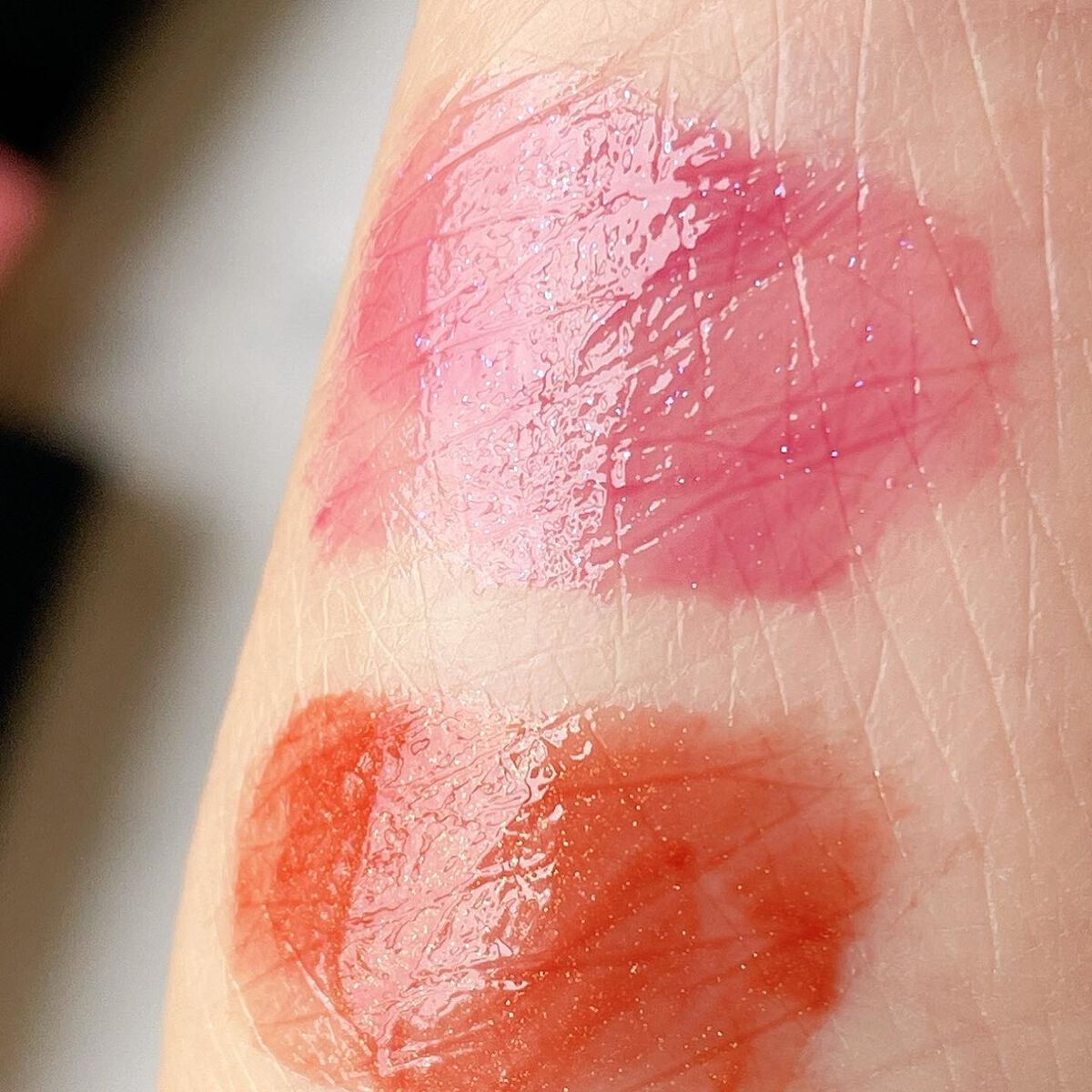 大好きすぎるリキッドルージュセラムに05.06の限定色が登場💄𓂃 05は好きな方も多いであろう青みピンク!多色ラメでキラッキラ ⸒⸒ 06は明るめのオレンジカラーでこちらはゴールドラメ ⋆͛ こちらのリキッドルージュセラムはリップケアもしながら可愛いカラーも楽しめるので唇が荒れやすい私も愛用中です🫰🏼𓍯 遠出した時、絶対荒れたくない時は必ずこれ!