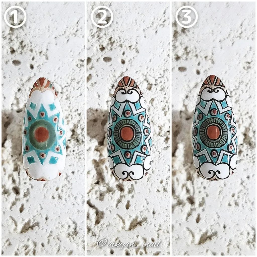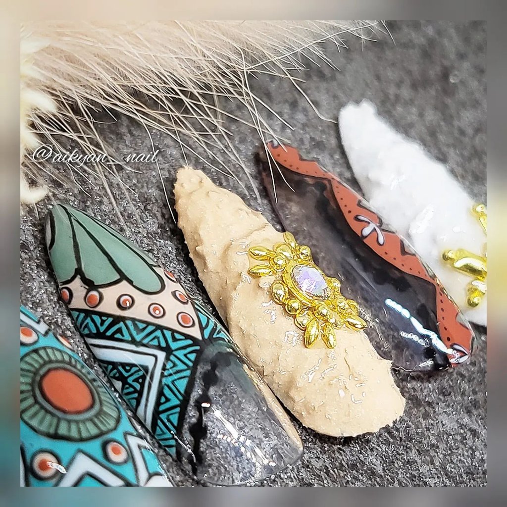 .AQUANAIL第5期公式アンバサダーの(@aikyan_nail)AIKAです★くすみ系カラーを使用しボヘミアン風のアートをしてみました💓色々なパーツを使ってみましたがMETALFRAMEStudsPartsMixSetは沢山の形と量があるのでこれ一つでデザインの幅が広がりとってもお得🫶線が太くなってしまったり違う色をはみ出してしまってもこまめに硬化していれば拭き取ってやり直しも👍̖́-もし、硬化してしまったあとは上に塗ってしまえば👌howto載せているので是非、見てみてください😊✻–✻–✻–✻–✻–✻–✻–✻–✻–✻–✻𖤐𝐢𝐭𝐞𝐦𖤐・ICINGGEL ┣【ブラック】 ┗【ホワイト】・AQUAGEL ┣【A12】 ┣【B14】 ┗【E05】・WHIPGEL ┗【A10】・クレイジェル ┣【01】 ┗【04】・熊野筆×AQUANAIL ┗【フラット3】・METALBRIONSET・METALFRAME StudsPartsMixSet・RhinestoneSet ┗【オーロラ3mm】・DIAMONDTOPGEL上記はAQUANAILさんの提供品と私費で購入している商品があります※一部私物を使用しています✻–✻–✻–✻–✻–✻–✻–✻–✻–✻–✻𖤐𝐡𝐨𝐰𝐭𝐨𖤐▫アート▫①AQUAGEL【A12】【B14】【E05】 WHIPGEL【A10】 ICINGGEL【ホワイト】で硬化しながら模様を描く②ICINGGEL【ブラック】で線を書き硬化③DIAMONDTOPを塗布し硬化したら完成/▫パーツアート▫①クレイジェル【04】を薄く1度塗り②クレイジェル【04】を 熊野筆×AQUANAIL【フラット3】で 凹凸をつけ硬化③METALBRIONSET、METALFRAME RhinestoneSet【オーロラ3mm】を乗せ DIAMONDTOPを塗布し硬化したら完成/ ✻–✻–✻–✻–✻–✻–✻–✻–✻–✻–✻いいね、コメント、保存よろしくお願いします🙌❤️質問、要望、リクエスト…etcお気軽にDMください👍▼▼▼ SNS ▼▼▼••┈┈┈┈┈┈┈┈┈┈┈┈┈┈┈┈┈┈┈┈┈┈┈┈┈••プロフィールにリンク集貼ってあります☆Instagram:aikyan_nailhttps://www.instagram.com/aikyan_nailTwitter:AikyanNailhttps://twitter.com/AikyanNailYouTube:aikyannailhttps://youtube.com/channel/UChxek0YohUtXln-Q5rSMatQTikTok:aikyaaan_https://www.tiktok.com/@aikyaaan_••┈┈┈┈┈┈┈┈┈┈┈┈┈┈┈┈┈┈┈┈┈┈┈┈┈•• #aquanail#aquanailで可愛くなれる#aquanail公式アンバサダー#セルフネイラー#ネイルアート#セルフネイラーさんと繋がりたい#ジェルネイル#ネイル#ジェル#セルフネイルデザイン#naildesigns#セルフネイル#ネイルチップ#ネイルデザイン人気#nail#nails#アート#nailart#art#design#ネイルデザイン#ボヘミアン#ボヘミアンネイル#手描きアート#手描き#ネイルパーツ#ボヘミア
