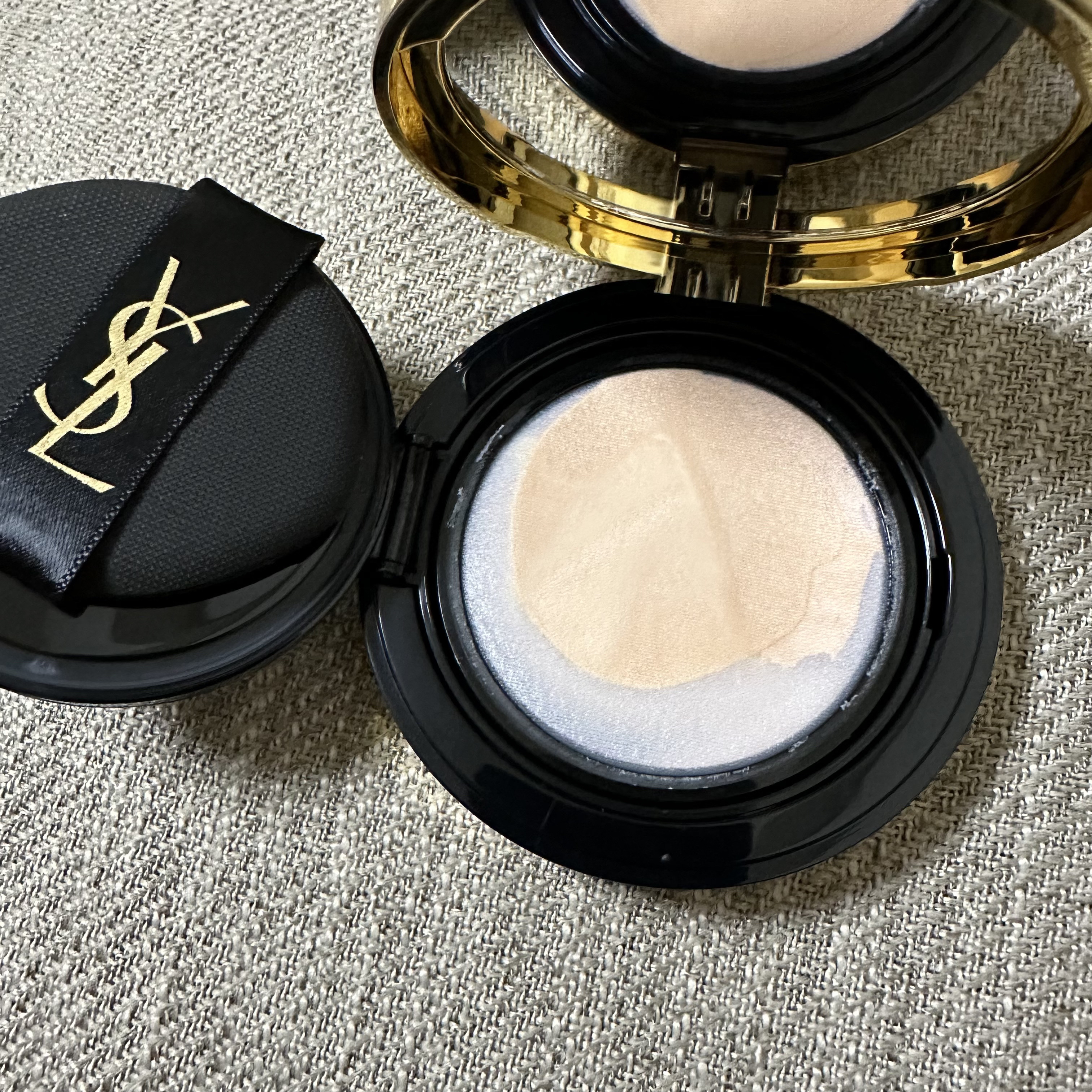 YSLはもともと違うタイプのクッションを持っていてそちらもお気に入りでした。 この見た目が好みすぎたので、最悪もともとのファンデを入れ替えればいいかなあと思っていたけれど、このタイプのクッションもめっちゃ好き。 4枚目は右側だけに塗ってみた写真なのですが、驚くほどの艶肌ですよね!たまらーん!! 正直、カバー力はあまりないけれどツヤでくすみをとばしてくれるのか、肌が綺麗に見えるのでお気に入りのクッションです✨ お値段が高いところと、ちょっと匂いが強めなのは難点かも。