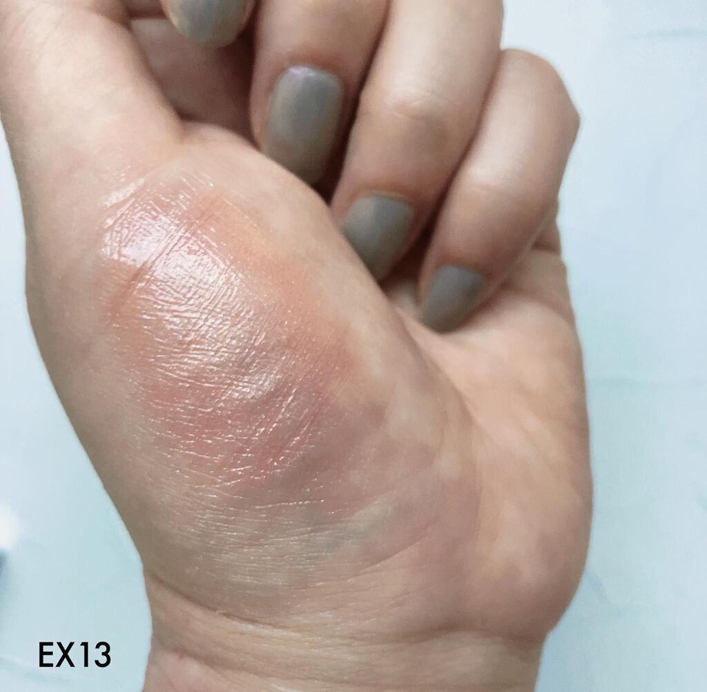 リップも2色とも購入しちゃいました💦 どちらも使いやすいピンクベージュのお色味です EX10は今年1/21に発売されたコレクションの限定色2色と同じプランプメロウリップス サテンで EX13は3/18に発売された限定色2色と同じプランプメロウリップスと商品名が別のアイテムのようです どちらもスルスルと滑らかに伸びる点は似ていますがEX13はシアーな色味で細かいパールが入っています どちらもスルスル塗りやすいですがEX13の方がよりスルスルです プランプメロウリップス サテン(EX10)の特徴としてはスムースサテン処方によりなめらかな感触繊細な光沢感フィット感・均一な発色を実現 プランプメロウリップス(EX13)はWオイル処方によりとろけるように唇にフィットヨレにくくムラになりにくいそう パール入りなので手持ちのリップと重ね付けなんかもよいかもです 写真でもわかると思いますがそれぞれタイプが違いどちらも素敵ですね 説明がくどくどとわかりにくかったかもしれません💦でも選ぶ際に少しでも参考になれば嬉しいです
