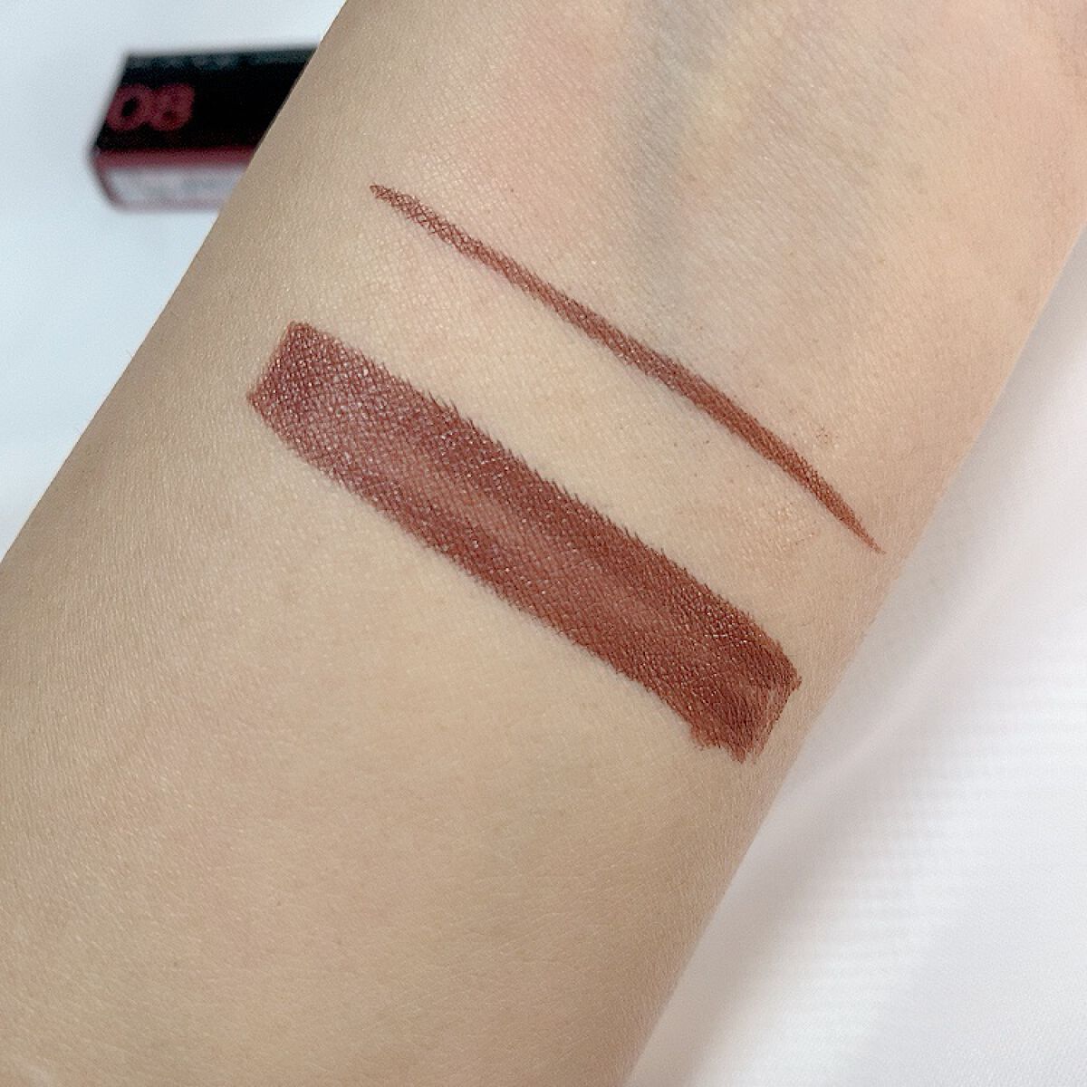 KATEコンシャスライナーカラー新色!08シックバーガンディ*こちらはオレンジブラウンとレッドブラウンの中間色みたいな絶妙な色味のアイライナーです!オレンジアイシャドウは勿論ピンクアイシャドウブラウンアイシャドウにも似合うと思います!垢抜けた...