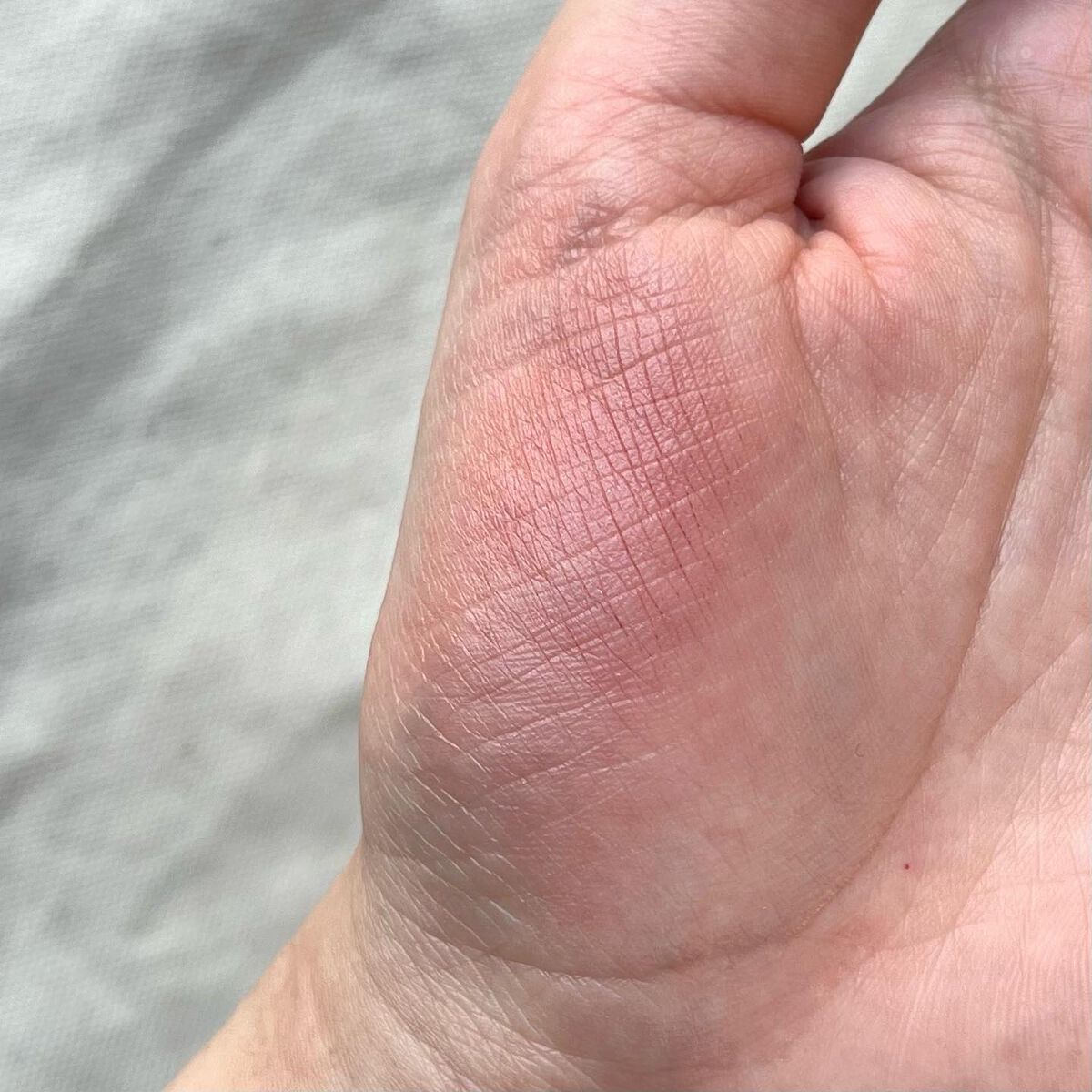 ローズピンクのカラーで、スティックタイプなので持ち運びが便利だし、手が汚れたりしないのが良いです。 ただ縁の部分が濃くついたりするので、ぼかすのが必要になるときもあります。 塗るとサラッとしてるので、マスクにもつきにくいのが良いです。