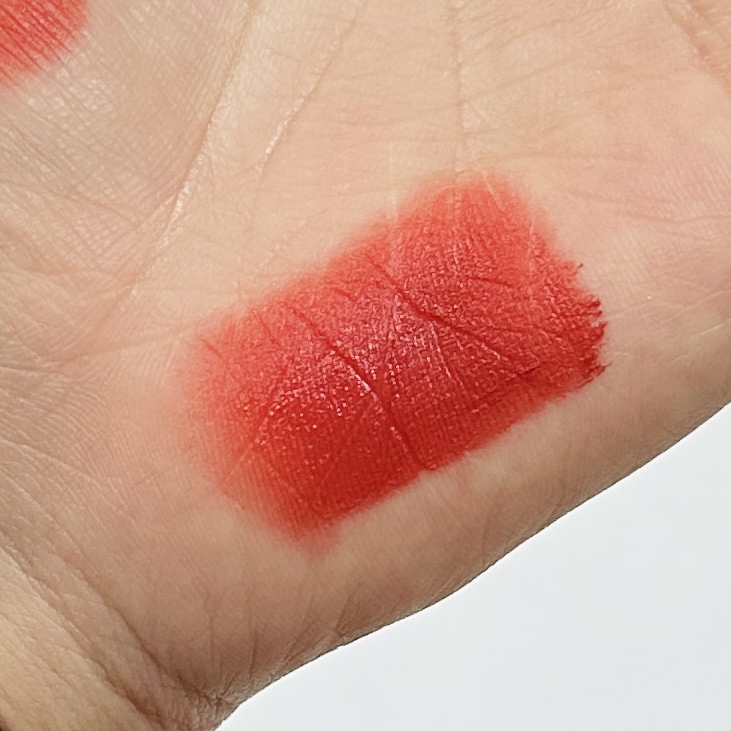 中身もしっかり良かったです! マットで、ふんわりとした仕上がりで発色もすごいいいです! 004Affectionは、少しオレンジっぽい赤なので、おそらくイエベさん向きのカラーですが、濃い赤なので、赤リップが似合うなら正直そこまで人を選ぶカラーではないと思います。 一つ気になるのは、香りがすごい強いことですね。 仕上がりが綺麗なので、まぁいいか~ってなってますが、中身微妙だったら許せないような匂いの強さです笑