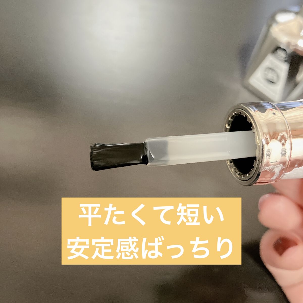 ベースコート不要!二度塗り+専用トップコートで仕上げるネイルポリッシュ。 乾くのがはやい😳特にトップコートは塗るそばから乾いていきます。 ブラシは太くて短め、そして厚みもある。液含みがよく塗りやすいです!