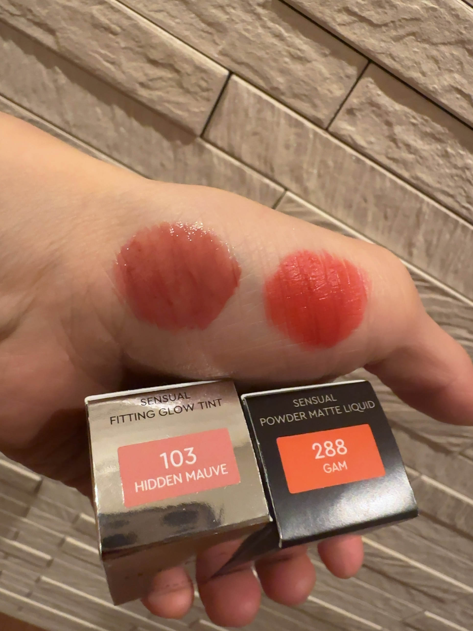 HERAセンシュアルフィッティンググロウティント#103 ヒドゥンモーヴ@cosmeにて購入しました。発色がすごいかわいいくて塗った後ベタベタしないので使いやすいです。ご飯食べた後も発色残ってくれてたので購入して良かったと思いました。エッセンスのサンプルもおまけでついてました☺︎
