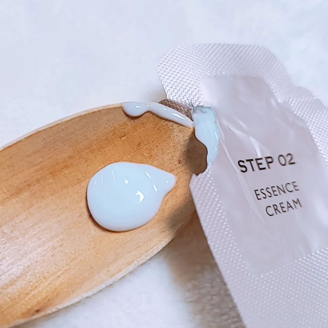パックは美容液がたっぷりで、薄めのシートなので肌への密着度がとてめ高いです👏 パック後のエッセンスクリームは柔らかく保湿力の高いクリームです✨ パックとクリームの2ステップで肌はとて潤い、もちもちになりました🥰