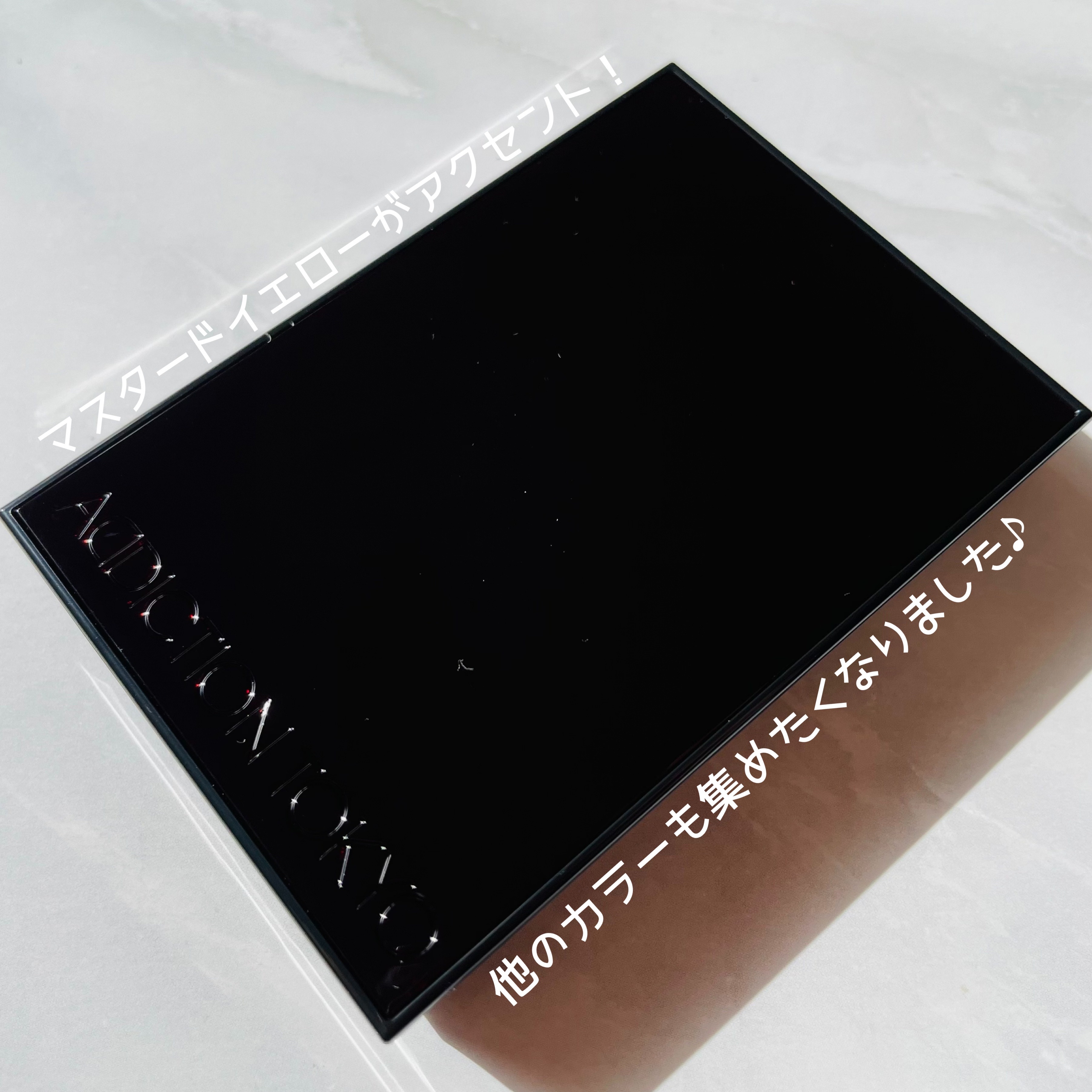 まずは冒険色からご紹介。 黄み全開パレット。 実物可愛いすぎなんだが!! キラっキラのホワイトゴールド 柔らかキャメルカラー マスタードのみたいな山吹色 グレイッシュなブラウン 全11色の新作に物欲全開でした。 初めて手にした正直な感想です。 すぐケーキング起こしそうな感じ。 ここで新作の定番パレットは神。 全11色❤ チェックせずには居られないですよね。 ちなみに、小田切ヒロ様の推しカラーは03との事。 チップはいらんかな、と思ったけど 付属のブラシは、良さそうです✨ ADDICTIONのブラシは良いと聞くので 期待値高まりがち🥺 日差しに照らすと、チラチラと、かなり綺麗です!! 控えめなんだけど、チラチラキラキラ。 追うよね、これは。多分追う。 大本命は、日常使いに良さげな01だったけど 定番との事なので、10と09を予約しました。 09開封は、また別の日の楽しみに残しておくとします。