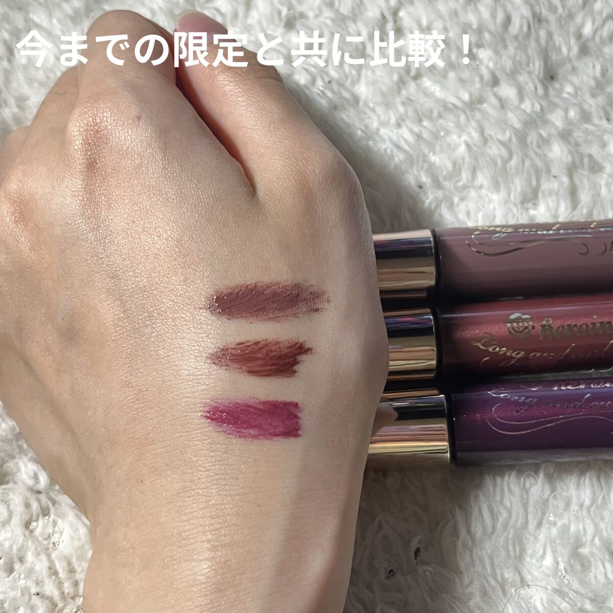 昨日限定で販売したロング&カールマスカラアドバンストフィルム限定色 3色その中で一番狙ってなかったcolorです(^人^)でもこれきっとアラフォーの人とか使いやすいカラーマスカラだと思います明る過ぎず暗すぎず絶妙♡安くて可愛いからついつい買っ...