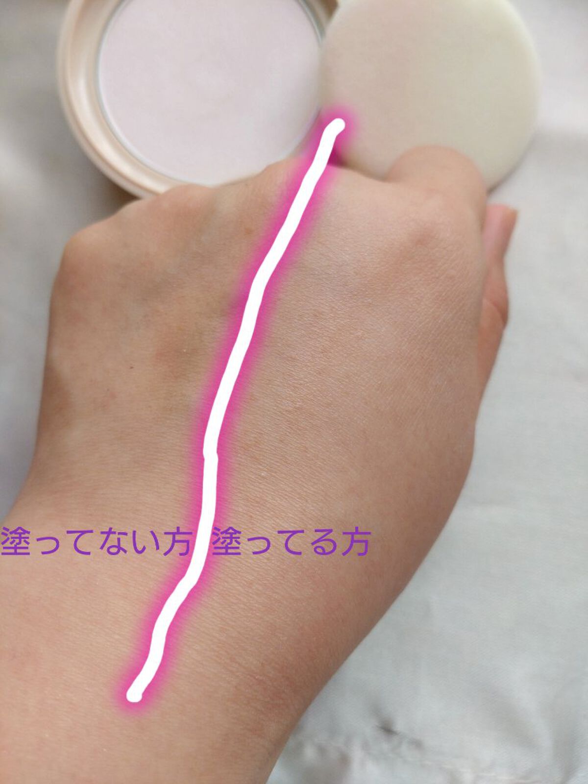 肌につけると、プレスされている時ほどにはピンク味は感じません。 ほんのりツヤ感もあり、透明なので下地やファンでのツヤ感も消えません。で、サラリと仕上がります。 ケースもコンパクトで持ち運びにも便利!