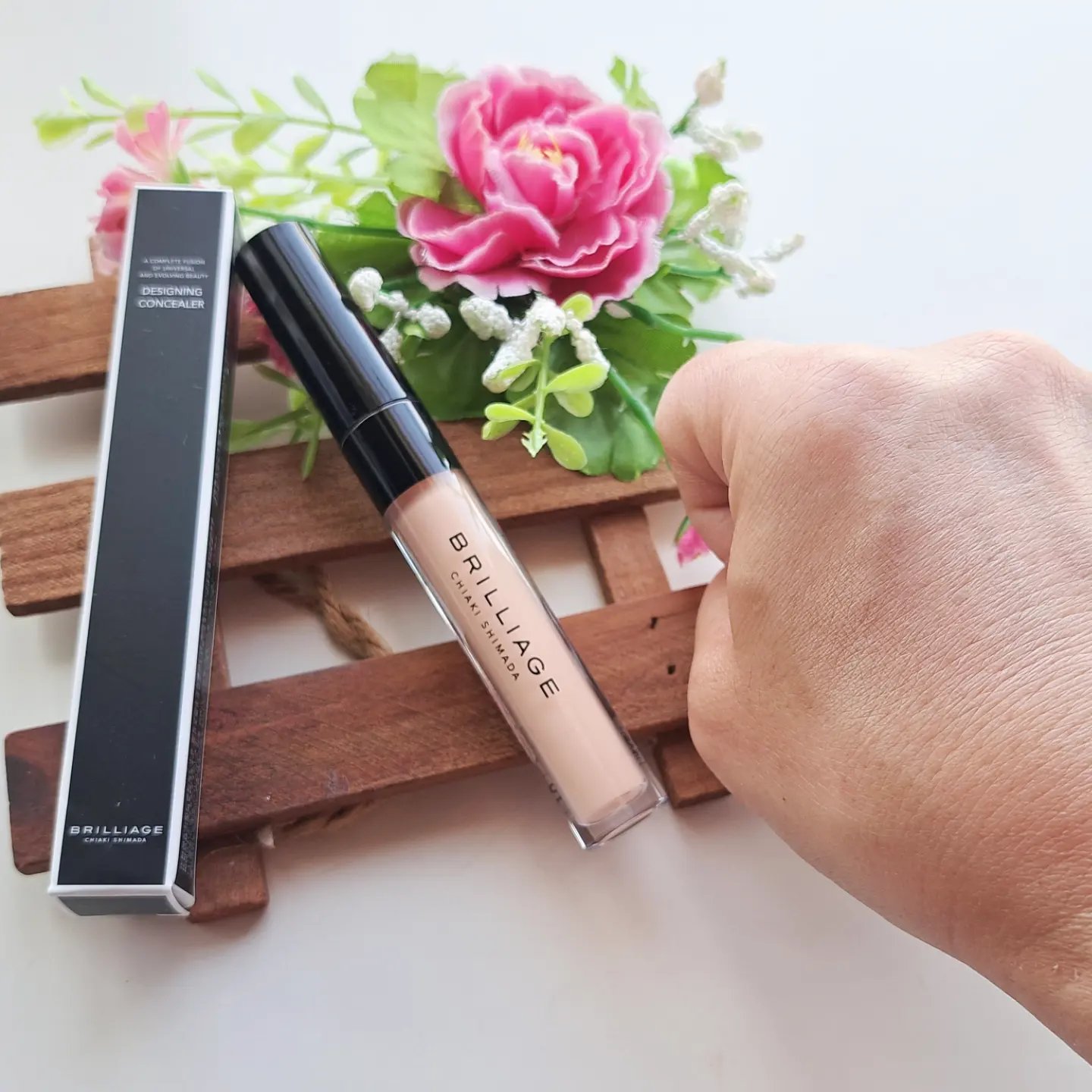 ブリリアージュ デザイニング コンシーラー なめらかなテクスチャーとハイカバーを両立しています。 目の周りはお悩みがいっぱいあると思いますが、多彩な美容成分で乾燥によるシワやハリをカバーしてくれます。 サーモンピンクをプラスしているから、お肌から浮くことなくしっかりとカバーできるよう色を調整しています。 01 ライトオークル系は、目のクマやくすみのカバーにぴったりなカラーです。 目元が立体的に見えたり明るく引き締まった印象を叶えてくれます。 トントンと指で広くとって大きく伸ばすように塗るか、コンシーラー用のブラシを使えばもっときれいに塗布できます。 5つのフリー処方で優しい使い心地のコンシーラー! 目元の小ジワをカバーする『パルミチン酸レチノール』を配合。 そして『クダモノトケイソウ果実エキス』入りで、クダモノトケイソウの果実から抽出されたエキスが、むくみ感やシワっぽさ、くすみなど表皮のバリア機能のサポートしてくれるそうですよ! 使ってみて、時間がたってもきれいな仕上がりでした。クリーミーでフィット感も良かったですよ。