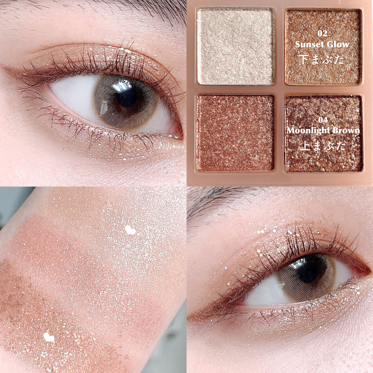 新作グリッターまとめ💫✨/IMUNNYスタイルモーメントグリッターパレットIMUNNYダズリングリキッドグリッター01ゴールドスパークル/02パンチスパークリングアイムユニの新作グリッター達が超かわいい!💗パケも中身もすごく可愛くて持っているだけでテンションが上がるコスメです!!✨♡ダズリングリキッドグリッターリキッドタイプのキラキラグリッター💫💫乾くとほぼラメが動かなくなって、長時間キラキラをキープしてくれます🙌💕カラーは全部で3色あって、私は01と02をおお試しさせて頂きました!どちらのカラーもベースが透明でラメのカラーだけがまぶたにのる感じなので、ほかのアイシャドウと組み合わせやすいのが魅力かなと思います🥰🥰ラメの輝きも華やかなんだけど派手すぎない上品な感じで、デイリー使いもしやすいと思います🙌🙌♡スタイルモーメントグリッターパレット全てラメの華やかなアイシャドウパレット。パウダーだけどしっとりしていてこちらも密着力高めです🙌✨1番濃いカラーが大粒ラメで単色使いが私は好きでした💖他の3色は細かいラメで、こっちはほかのアイシャドウと組み合わせるのが好き!輝きがとっても綺麗で、これをアイメイクの最後にトッピングすると華やかになるから、これ一つ持ってて本当に損がないアイテムです、、!どちらも落とす時にラメの刺激を感じたので、クレンジングをする際は目元用のリムーバーで丁寧に落とすことをおすすめします😌気になった方はぜひ、チェックしてみてくださいー💗#モニター#夏コスメの戦利品