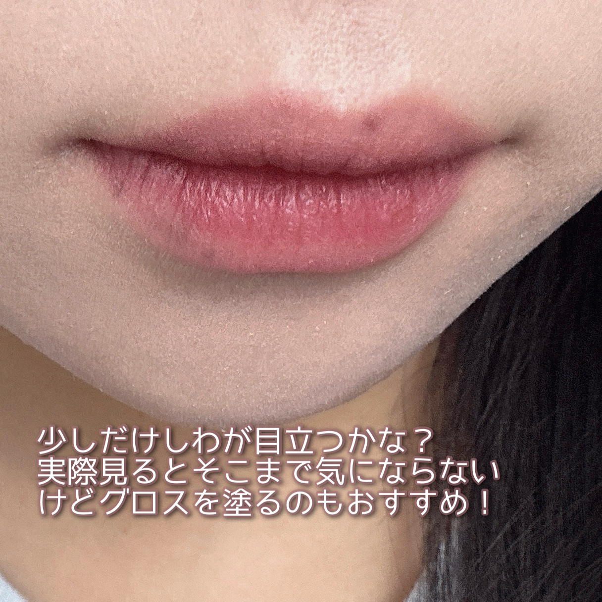 塗った直後は、濃いめにしっかり発色&艶感あり すぐに乾いて唇に定着します マスクやグラスに色移りしないのでかなり便利です✨ 少し乾燥するので気になる方は保湿リップもあわせて使用をおすすめします。