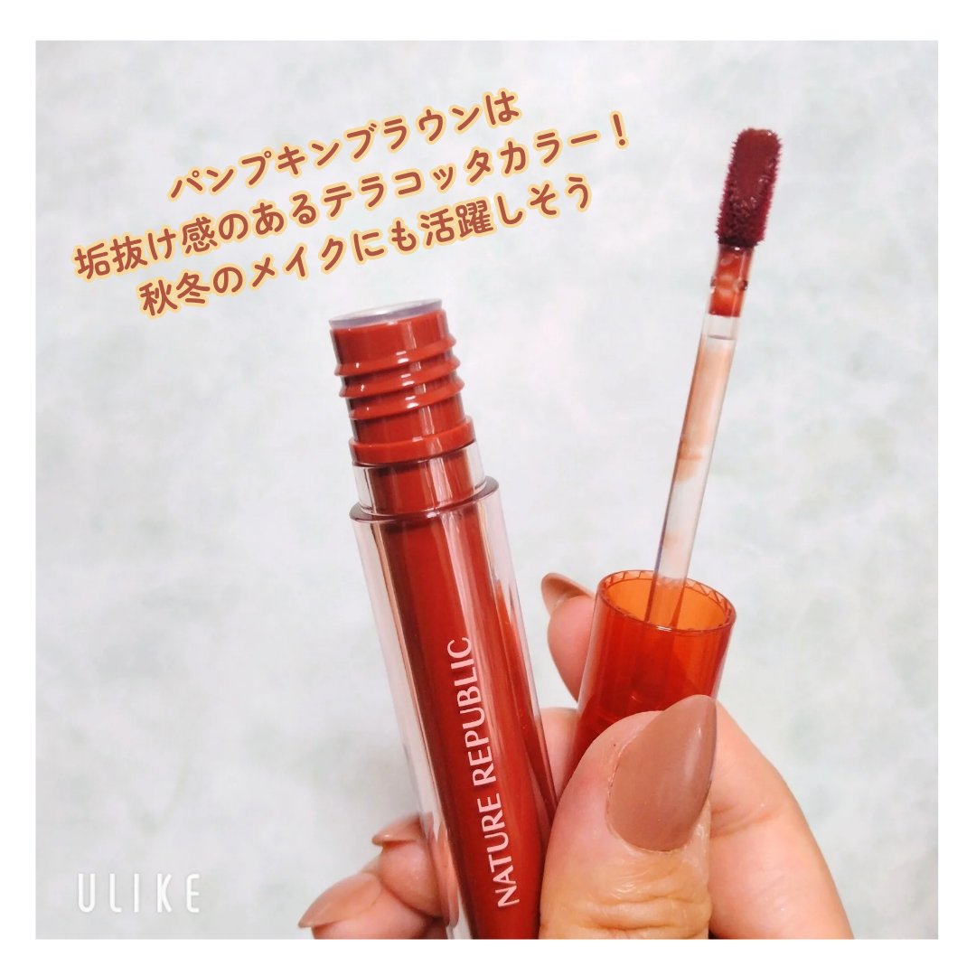 NATUREREPUBLICバイフラワーグラスデューティントパンプキンブラウン🎃@Naturerepublic_さまからいただきましたちゅるんとシロップ膜で見たまま高発色ティント💄やや重めなのにスルスル塗れ、ティッシュオフしてもしっかりめの色づき🥰デートや食事シーンにもオススメです✨深い紅で秋っぽいメイクにもぴったり♡これからの季節に大活躍しそうです🥰#PR#ネイチャーリパブリック#バイフラワーグラスデューティント#秋っぽ先取りメイク