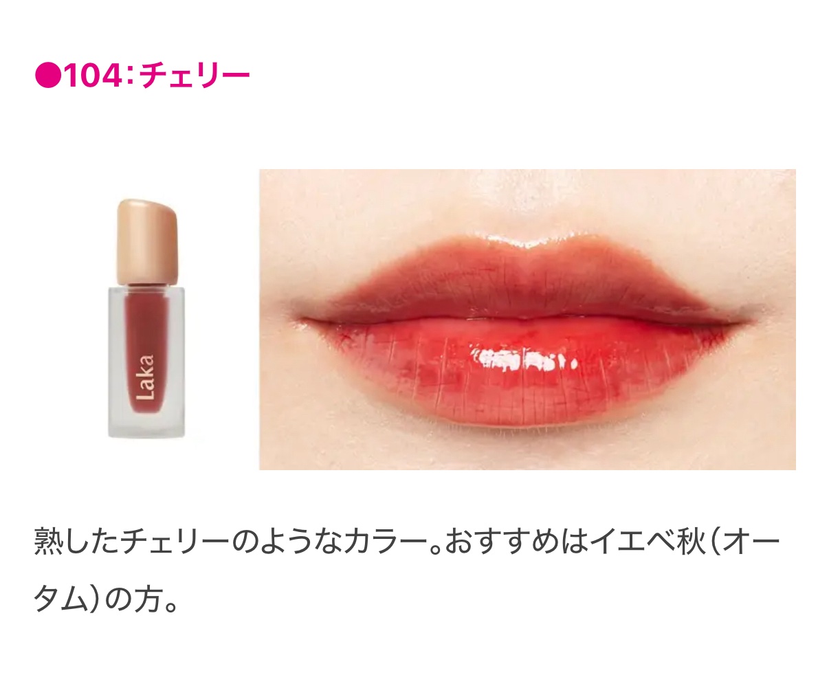 関連する記事Laka(ラカ) フルーティーグラムティント 104 チェリー