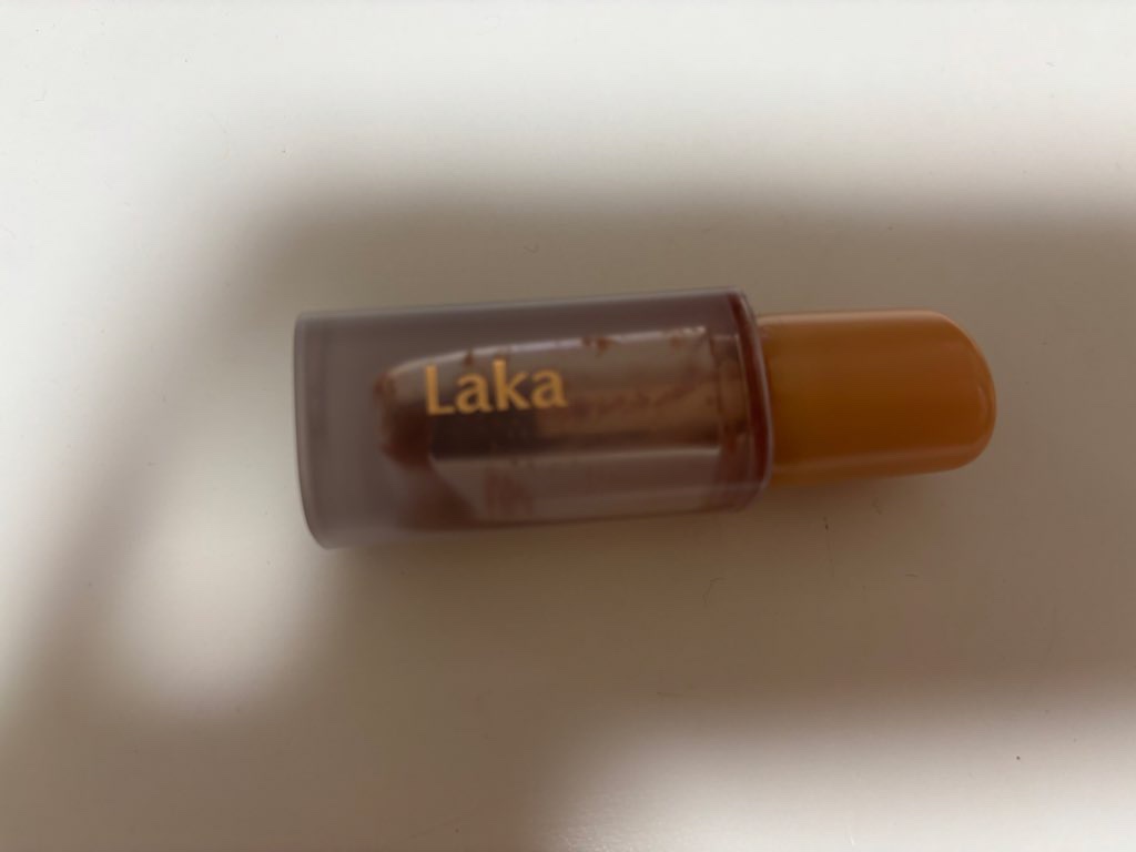 lakaのフルーティグラムティント(108ソルティ)を使い切り!ベージュ系のリップは発色が薄くてつけてる?みたいになることが多いけど、しっかり色がつくし質感もちゅるちゅるになるし本当よかった😍最近流行りのモカムースメイクにもいいと思う!#使い切りコスメ