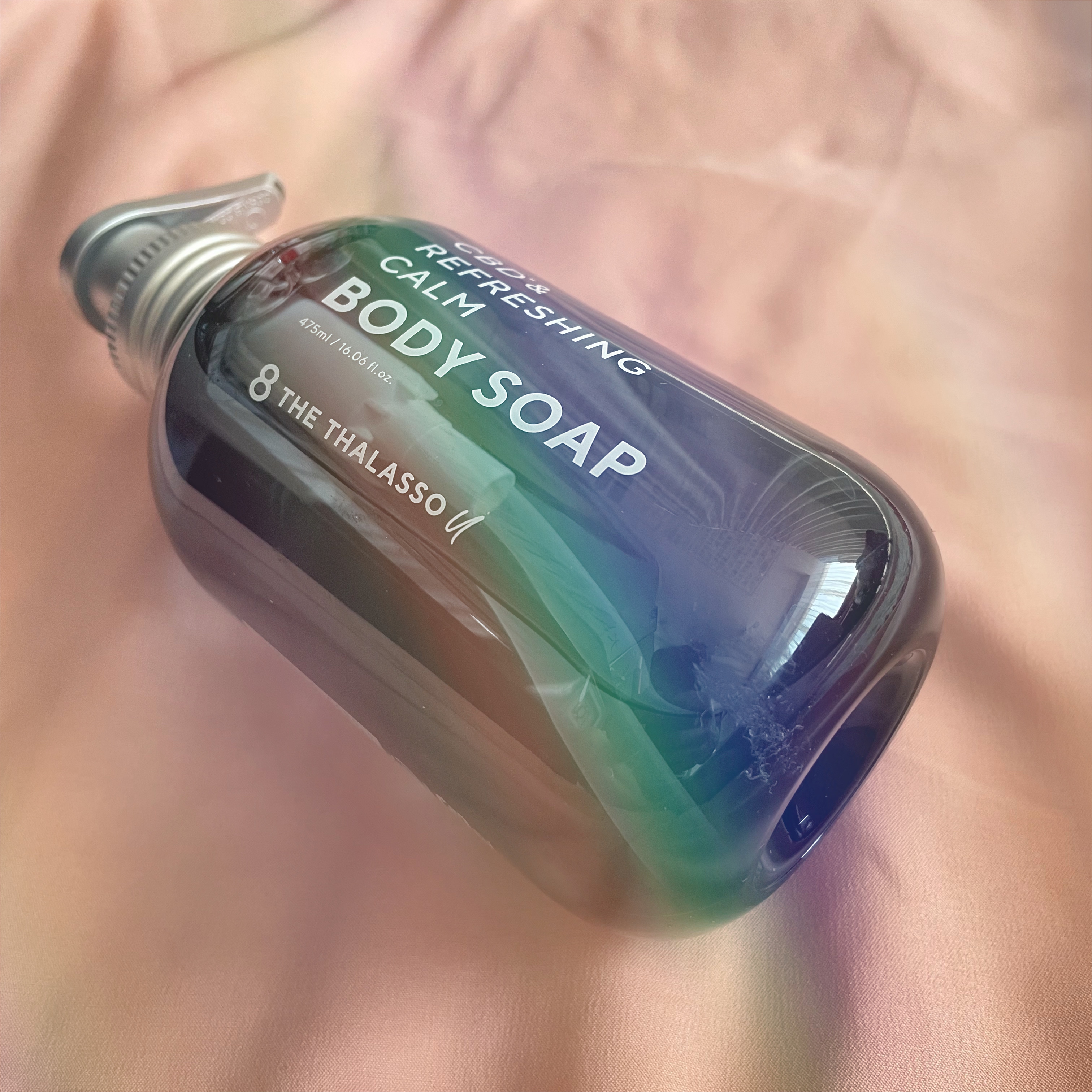 エイトザタラソユーCBD&リフレッシングカーム美容液ボディソープ🫧正直そこまでボディソープへのこだわりがなかったのですが、年々肌の乾燥が気になるようになってきて、ボディソープ選びを見直しているときに出会ったのがコレ!泡立ちがよく洗い流すまで泡がへたらないから、摩擦が気にならないし、ゴシゴシこすらなくても泡でやさしく汚れを洗い流せる感じがするし、泡切れもそれなりによかったです❣️何より洗い流した後の肌の乾燥感や、つっぱり感がなくて、しっかり肌が保水されているような感じで、お風呂上がりに乾燥からくるかゆみなどもなくて、とても良い使用感でした!!