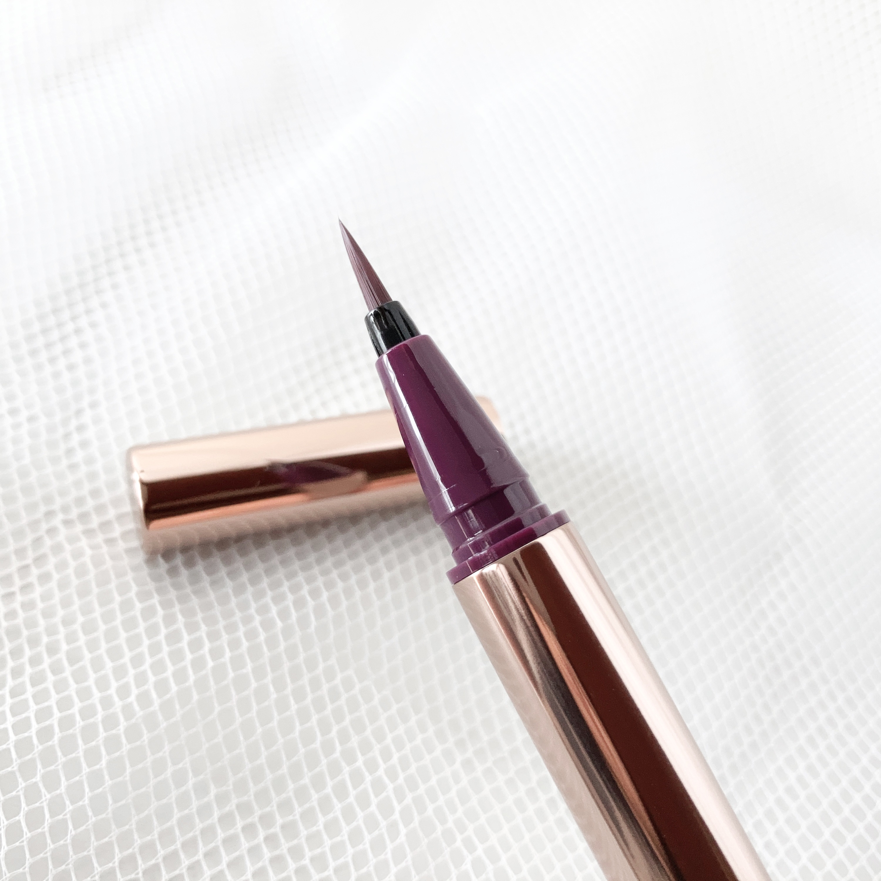 何よりも色味が可愛すぎる😖💜絶妙なくすみラベンダーでメイクに透明感をプラスできます🫧 紫やブラウン系のアイシャドウにぴったりです🧸 コシのある筆先0.1mmで描きやすさ◎ 速乾&ウォータープルーフなのも助かる🥹