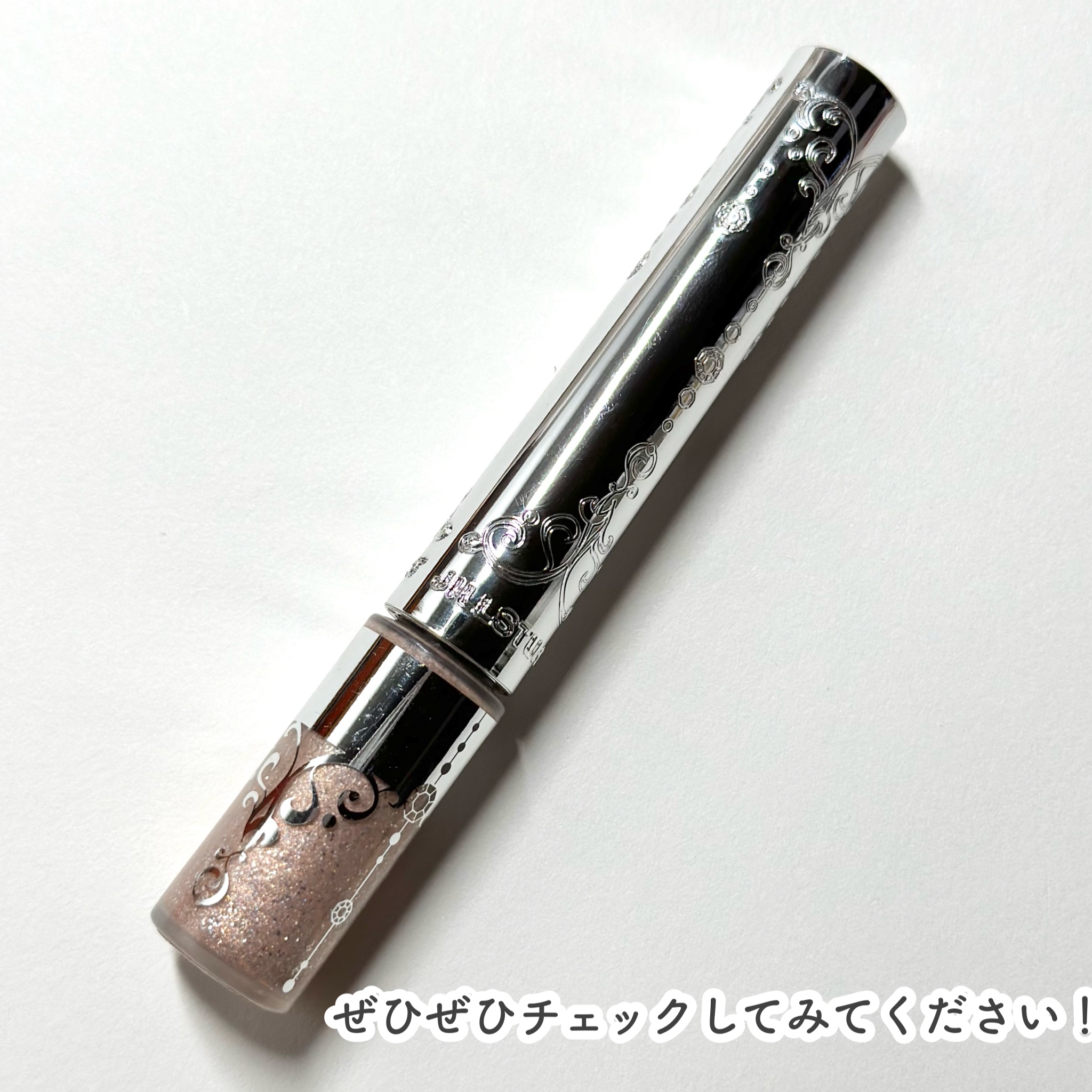 まずパケが大優勝🏅 可愛すぎる。 そしてシルバーの細かいラメに少しピンク色が入っていて下瞼に塗ることが多い! さらに落ちにくい気がする🤔 以前プールに行った時ラメが少しだけ残ってました〜