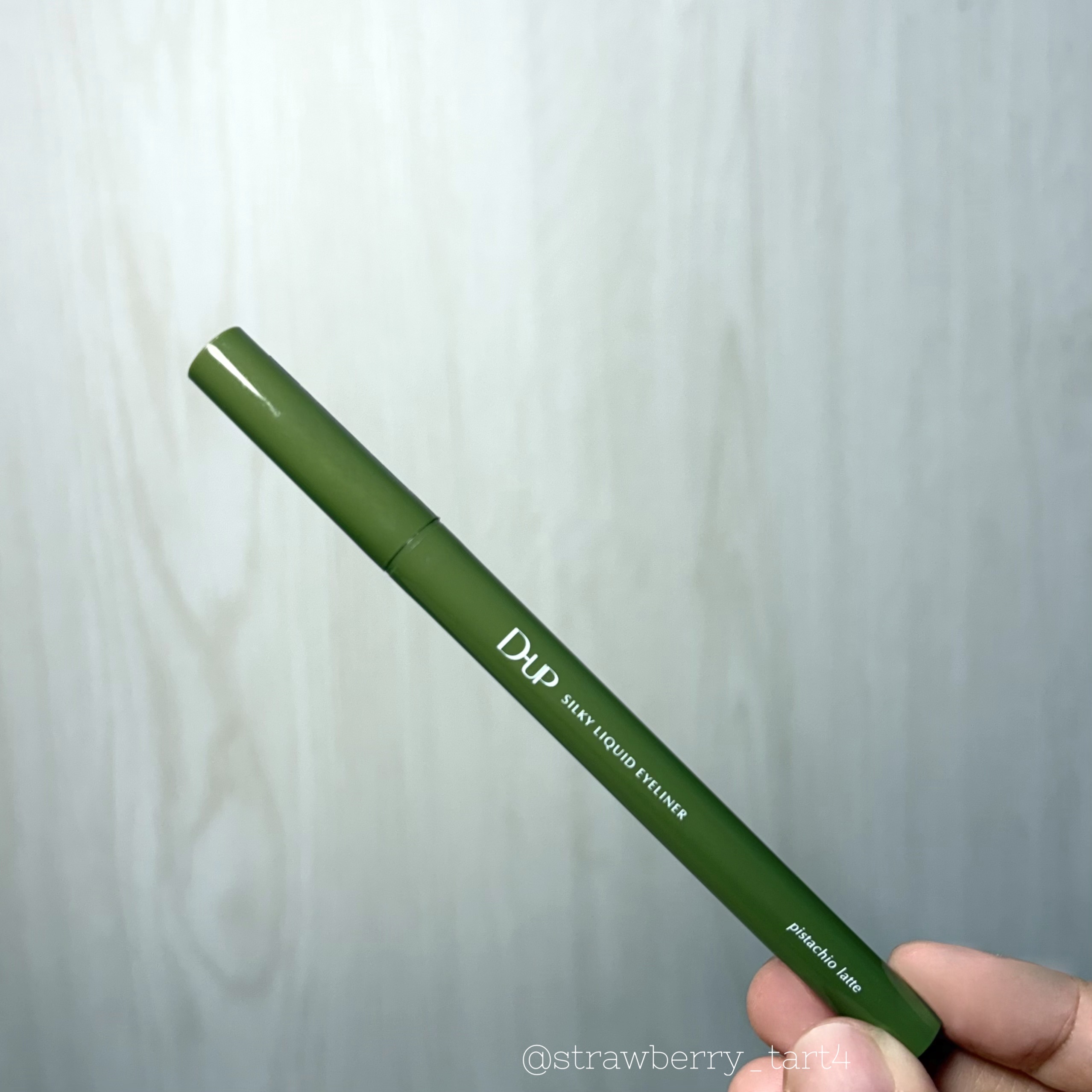 こんにちは!D-UPシルキーリキッドアイライナーWPピスタチオラテを紹介していきます☝️肌馴染みが良くありつつ、映えるカラーです!「ピスタチオラテ」という名前も可愛い♡密着して落ちないところもD-UPのアイライナーのいいところです!軽やかなカラーなので普段のメイクと雰囲気を変えたい方にもおすすめ🤤滑りの良い筆も推しポイントです!本日のまとめ!📍滑らかな筆で極細のラインを描いちゃいましょう💪#こっくりカラーに夢中