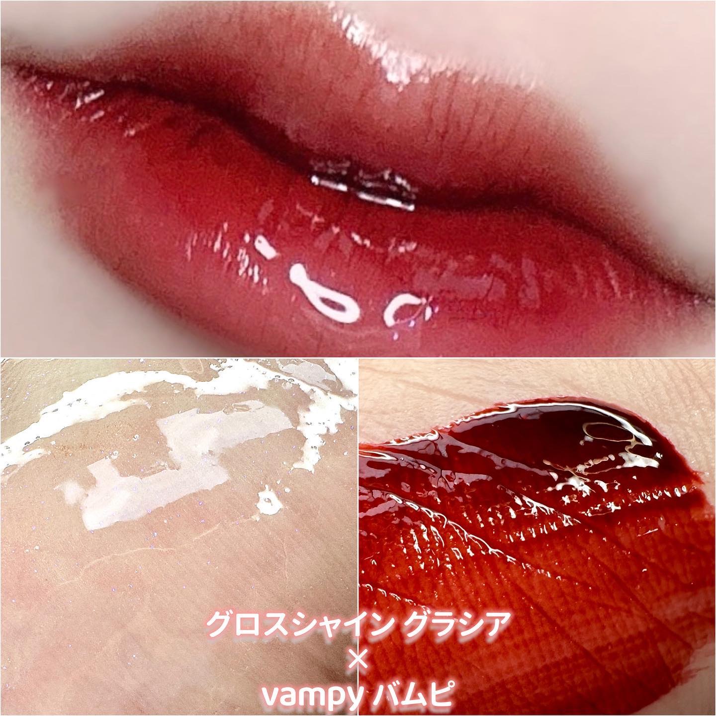 クチュールリップ ティントシャインヴァンピィVampy自信が必要な瞬間に現れる私だけの味方毎日使いたいヴァンパイアレッド クチュールリップグロスシャイングラシアGlacierクールなブルーパールがちりばめられてベタつかず、透き通ったぷりぷりとしたガラス光沢を演出してくれるパールグロス カラーの可愛さも然ることながら驚きなのがティント力❣️クレンジングシートで擦っても付けた色そのまま定着してる😳落ちなすぎて逆に迷惑🤣