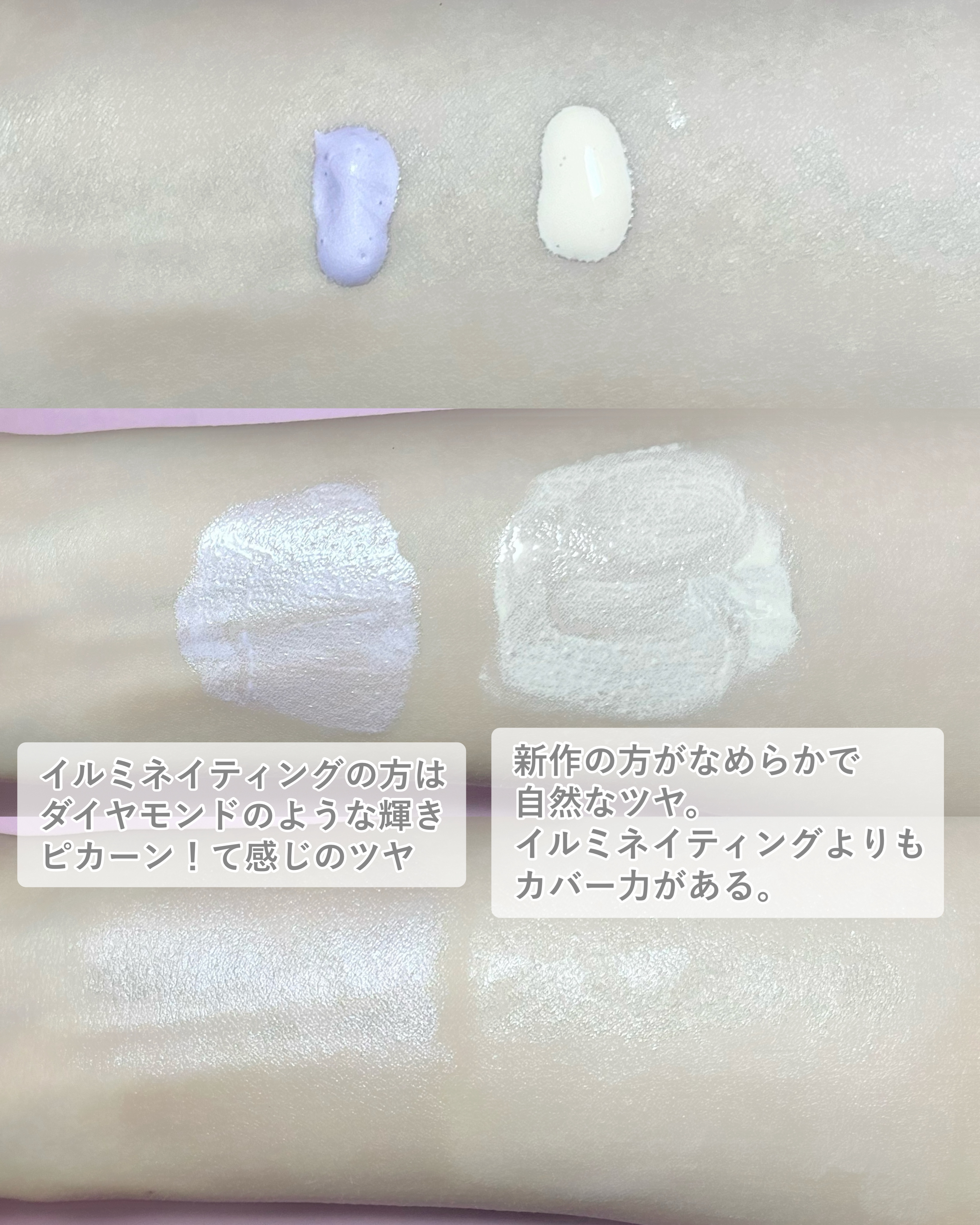 JILLSTUARTから新作プライマー登場!💎JILLSTUART様からいただきました!JILLSTUARTフローレスジェムセラムプライマー¥3,850(税込)9/5発売の新作プライマーです!肌をなめらかにつるんと見せてくれるツヤ下地!潤いを感じる使い心地と仕上がりでした!ジルにしては色も質感もナチュラルなので、大人の方も含めとても万人受けしそうな印象!大人気でド定番なイルミネイティングセラムプライマー(リニューアル前)との比較もしています!イルミネイティングセラムプライマーの方がダイヤモンドのような輝き、フローレスジェムセラムプライマーの方が真珠のよう自然な輝きです!フローレスジェムセラムプライマーの方がカバー力もありナチュラルなので、私は新作の方が好みかも🎀ぜひチェックしてみてください!#新作コスメ#JILLSTUART#ジル新作#ベースメイク#プライマー#ブルベ夏#ツヤ肌